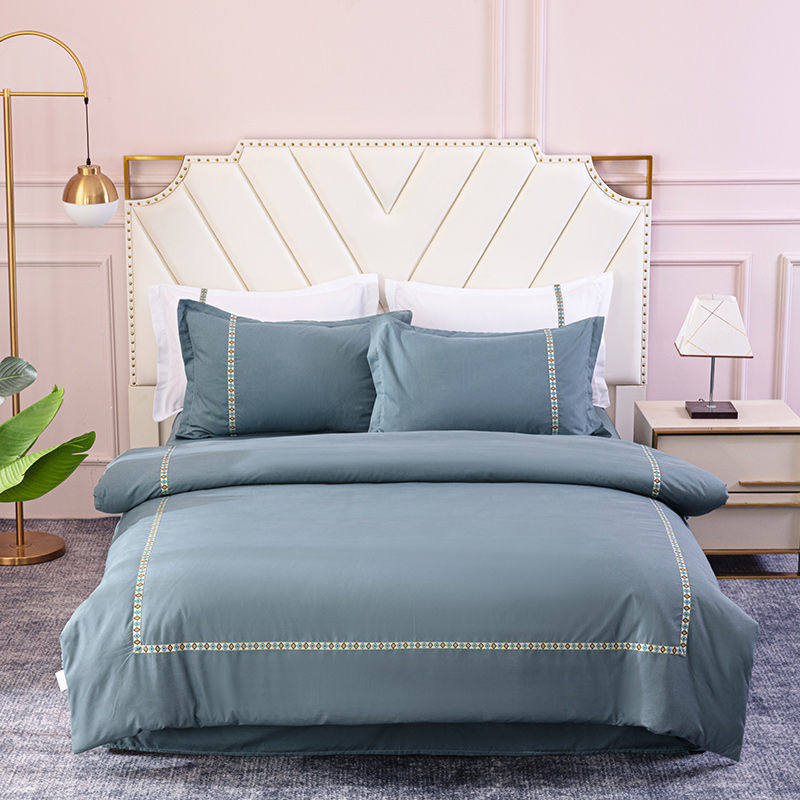 酒店床单四件套织带单双4件套三件套宾馆纯色人被套民宿风套件