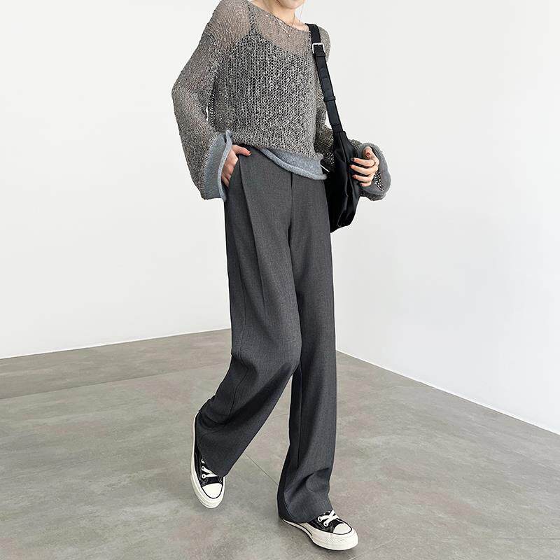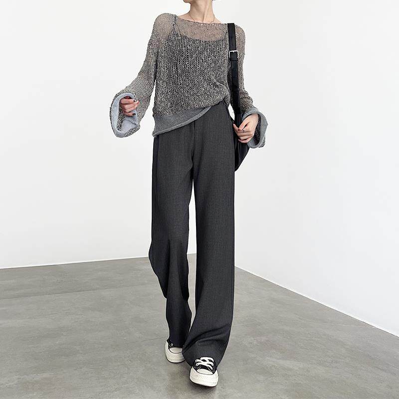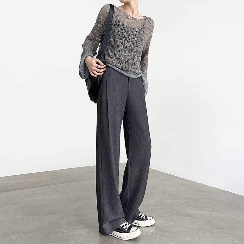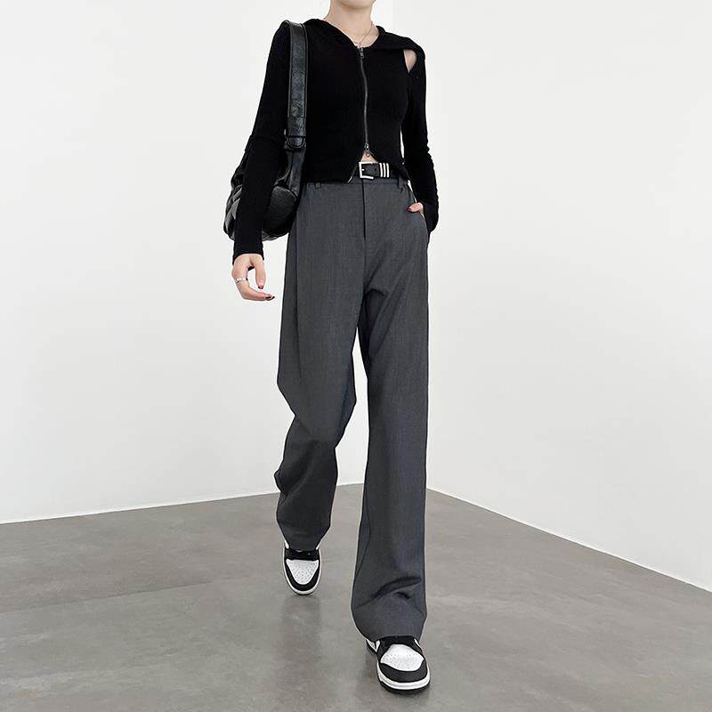 灰色阔腿裤女春秋2025新款高腰垂感羊毛休闲设计感直筒窄版西装裤