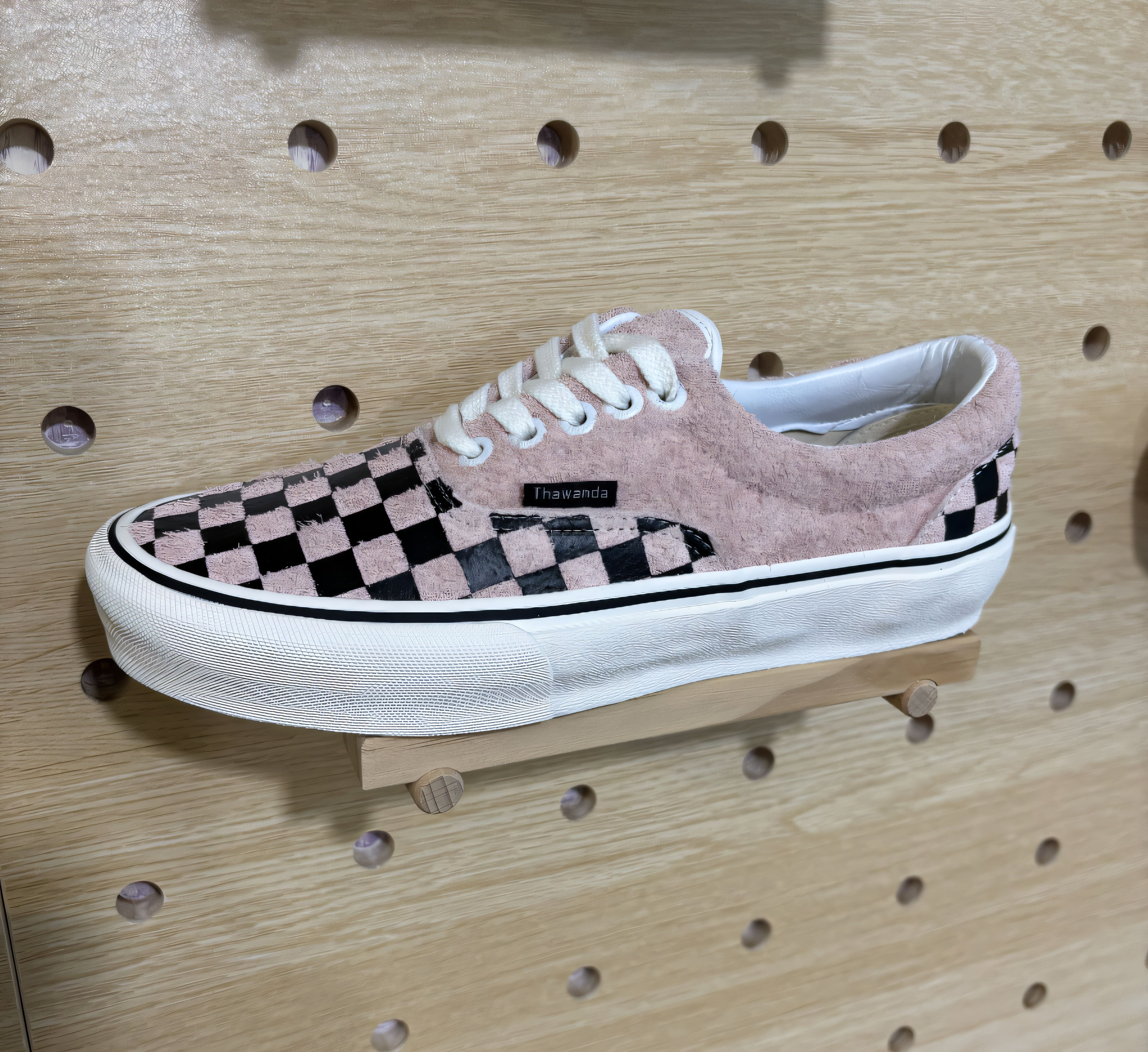 首页> 鞋包> Thawanda男女同款厚底复古翻毛牛皮粉色棋盘格低帮硫化板鞋