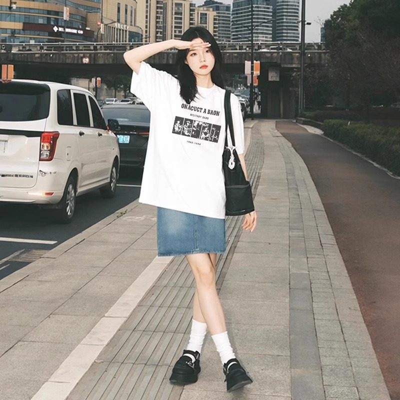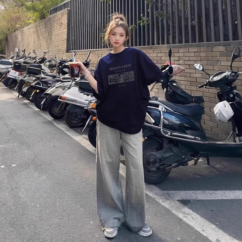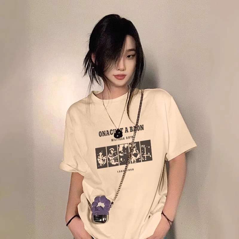 高质量纯棉220克精梳紧密手感好直播品质前印花2025夏季短袖t恤女