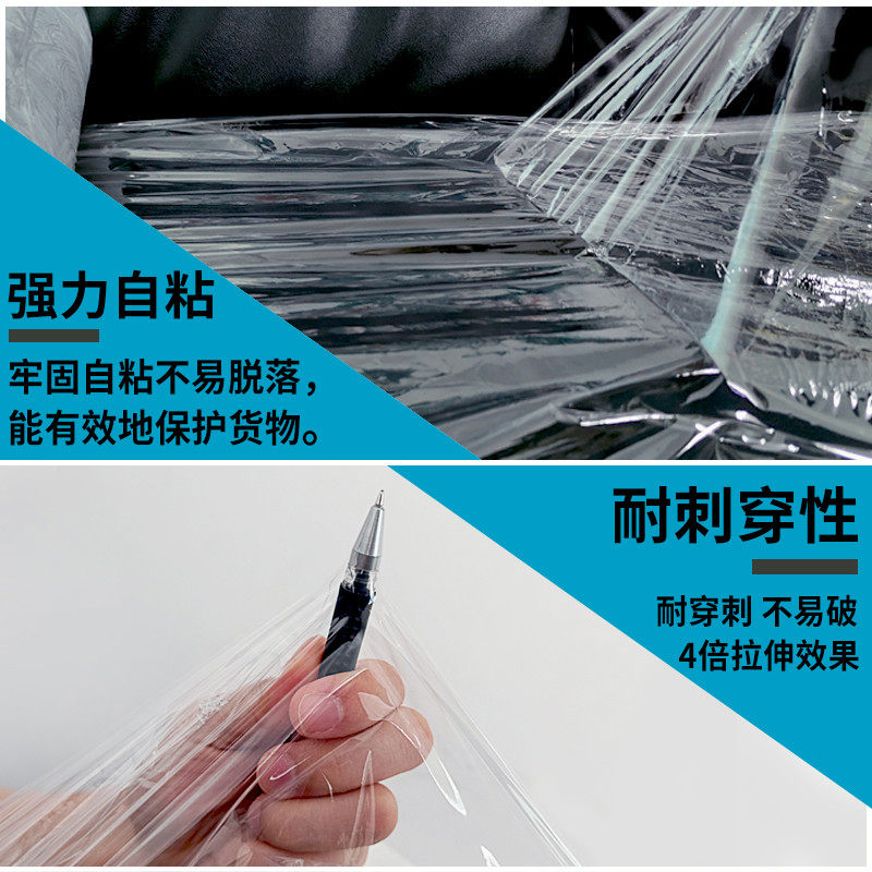 塑料薄膜透明缠绕膜pe自粘包装工业用保鲜膜物流大卷保护打包围膜