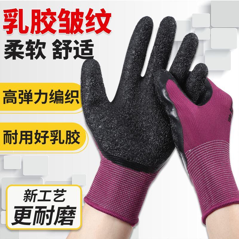 皱纹手套劳保耐磨工作男工地干活加厚浸胶防滑劳动透气橡胶乳胶皮
