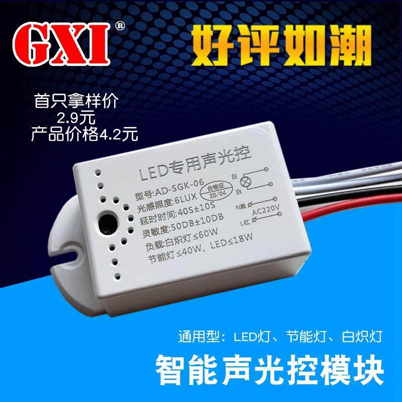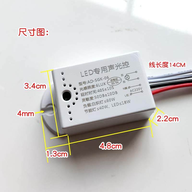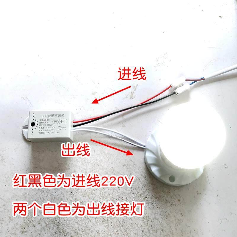 吸顶灯四线声光控开关模块楼道智能感应延时开关节能LED声控开关