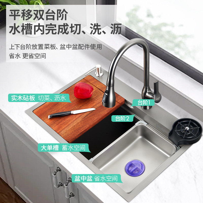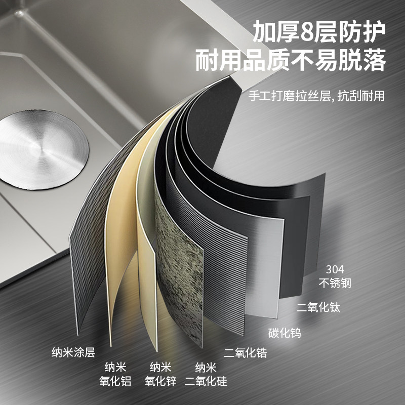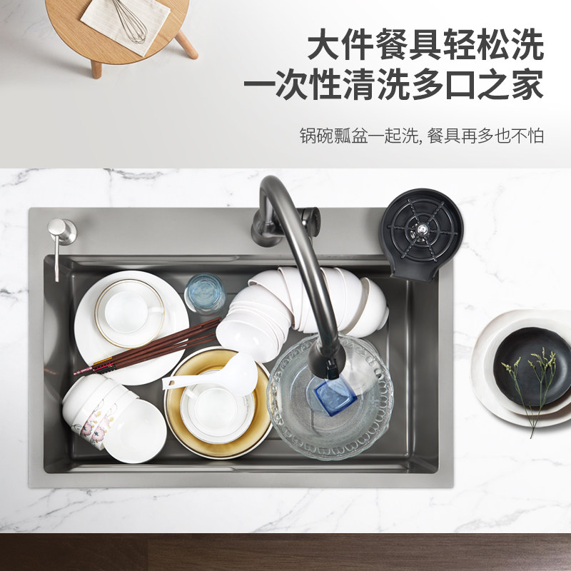 新款厨房枪灰色水槽大单槽304不锈钢纳米台上台下盆加厚手工盆