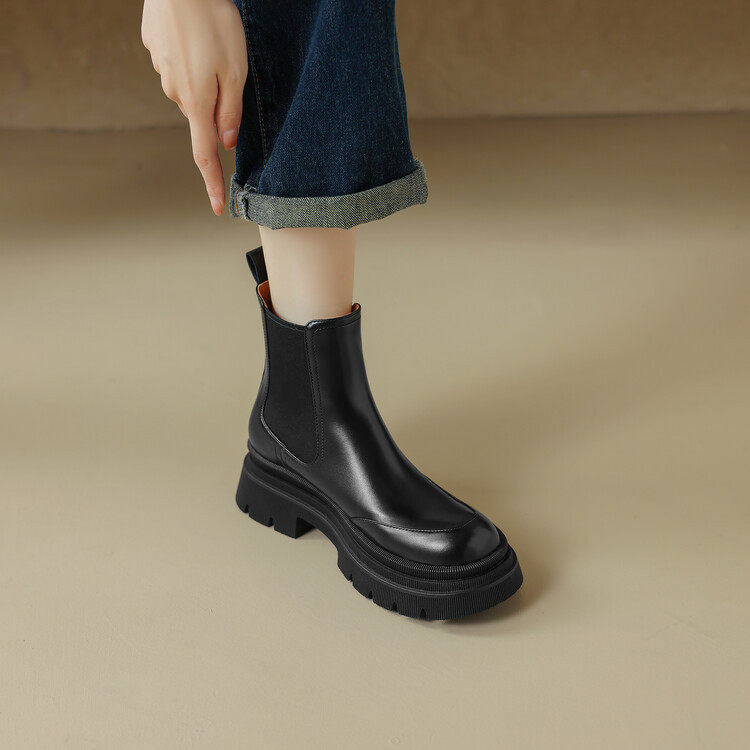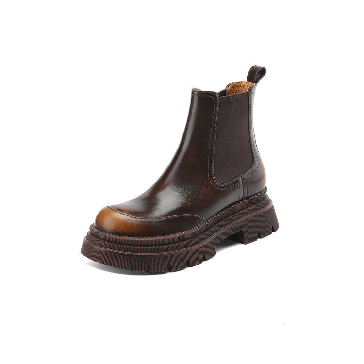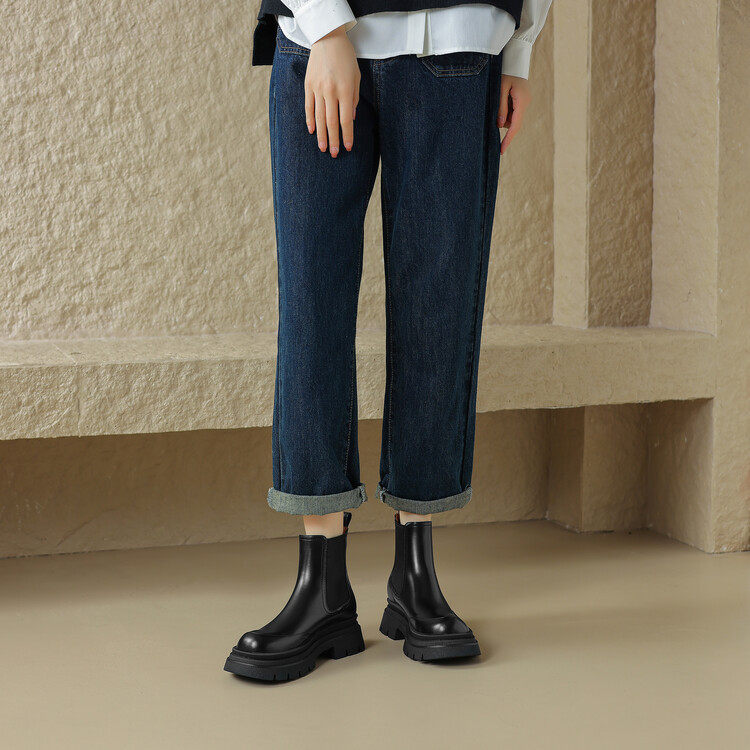 真皮内马丁靴女厚底中筒烟筒靴切尔西短靴2023秋季新款英伦风增高