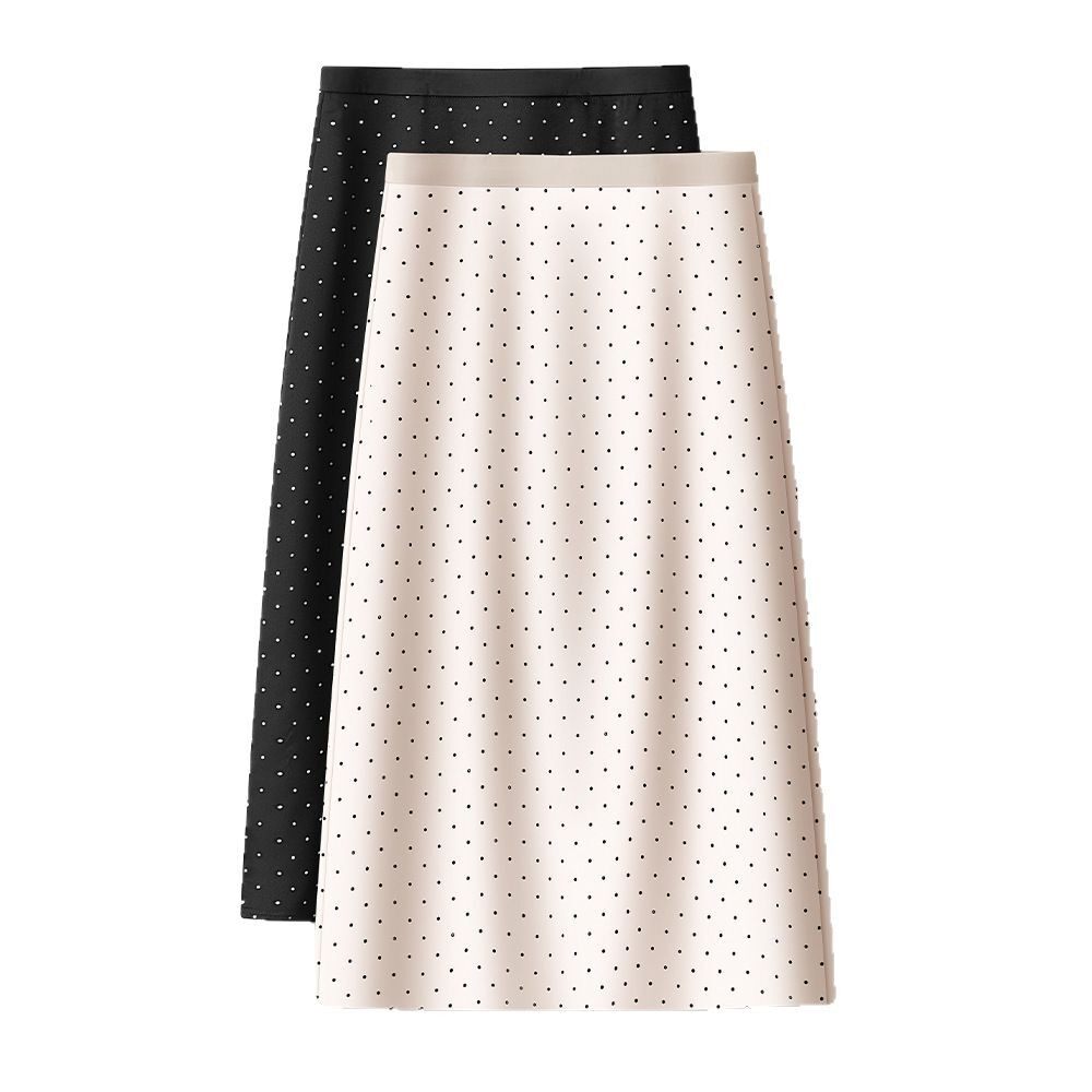 垂顺缎面波点直筒半身裙女春季2025新款法式包臀裙高腰显瘦中长裙