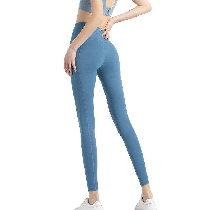 肥小棉品牌高腰口袋健身裤女双面锦纶弹力运动紧身裤蜜桃臀瑜伽裤
