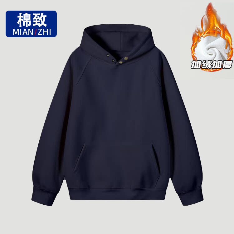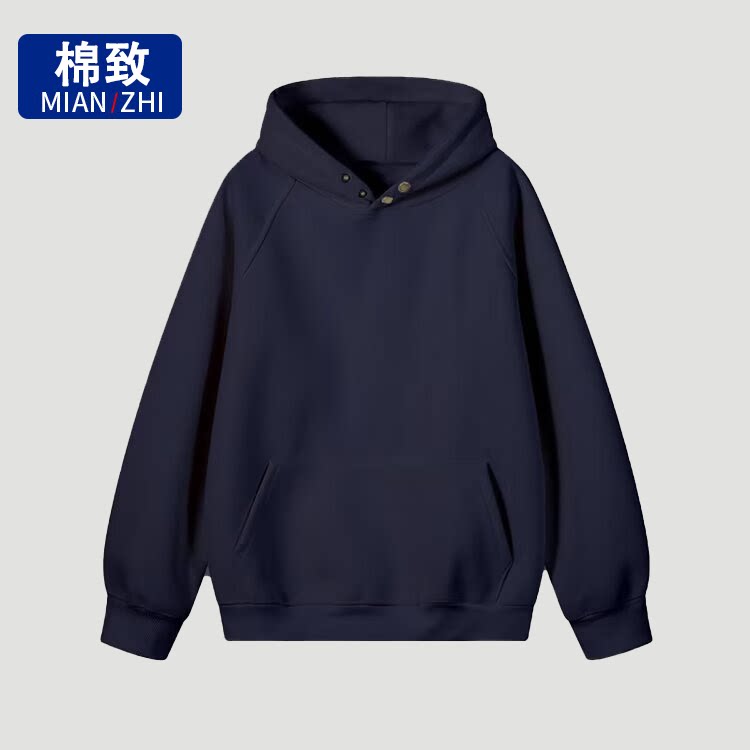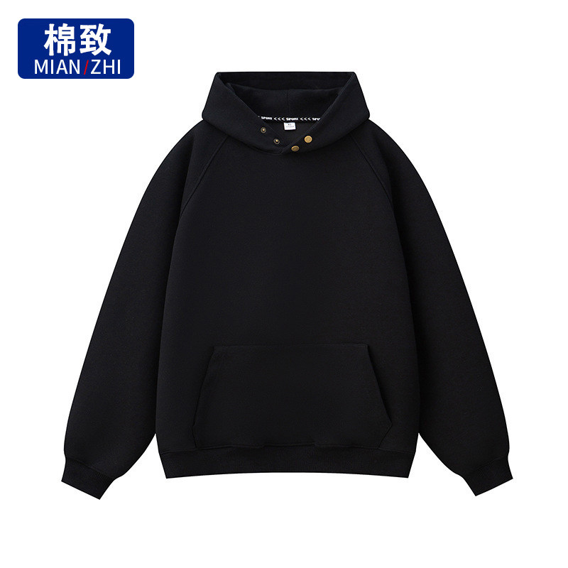 棉致美式纽扣连帽纯色卫衣重磅长袖男女高街厚实宽松