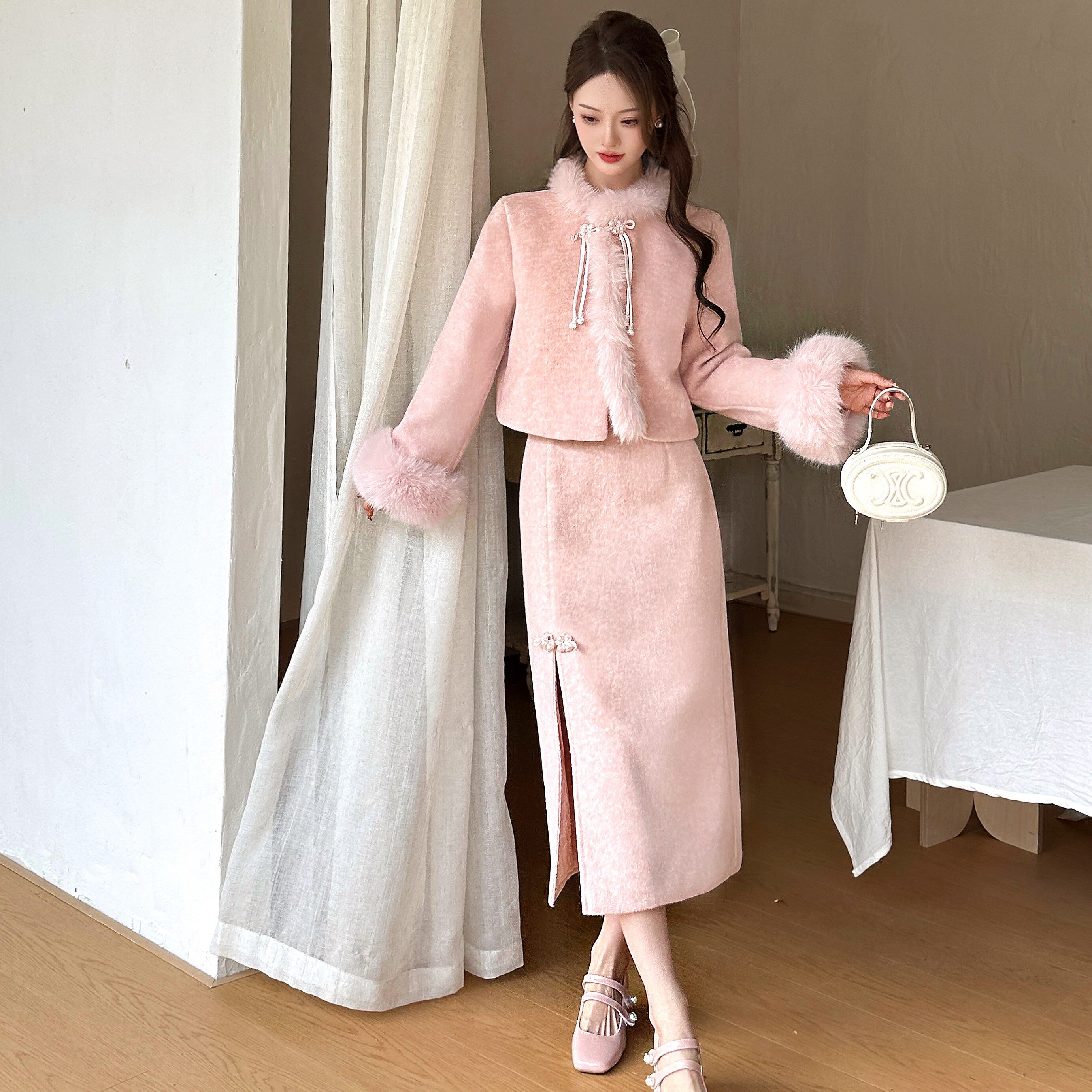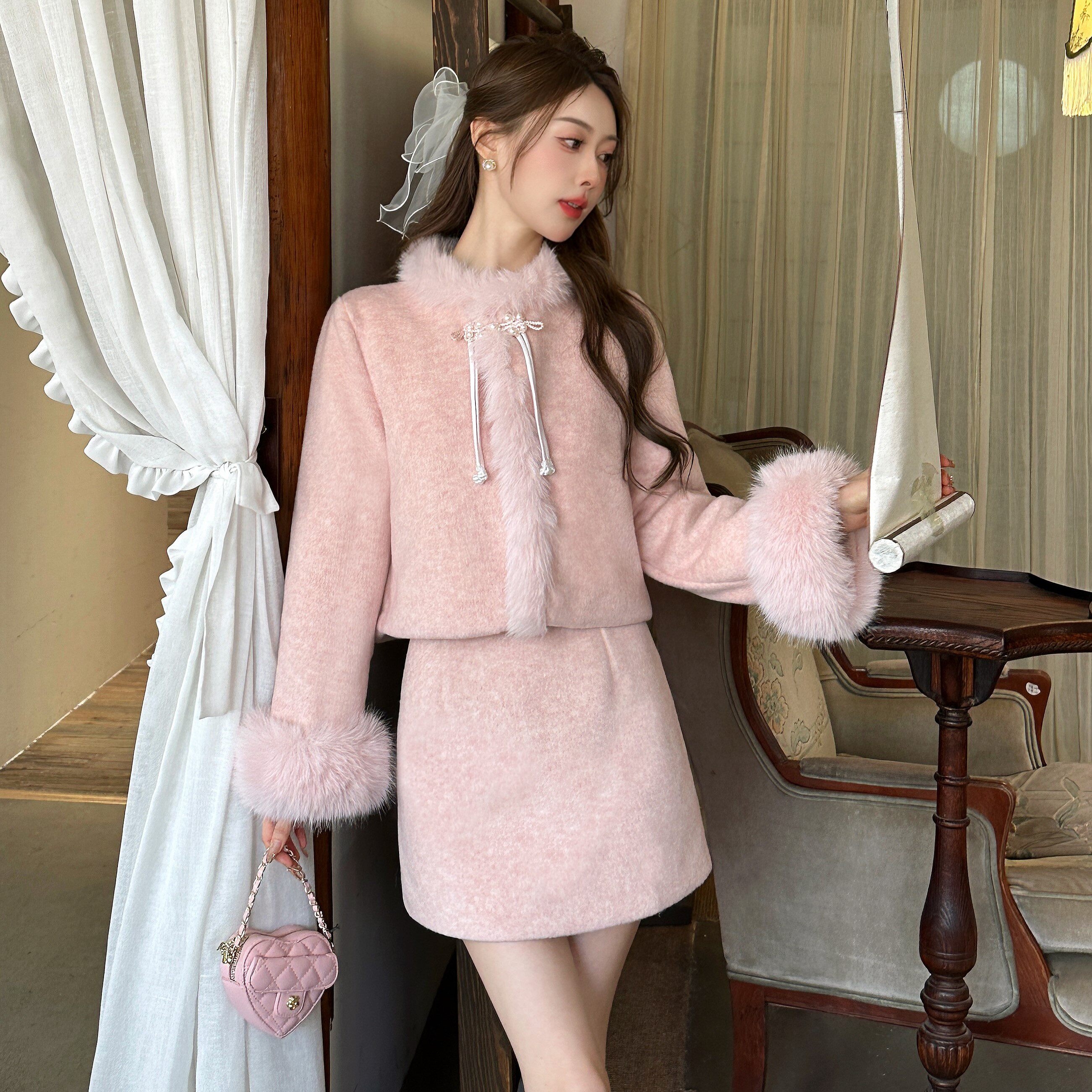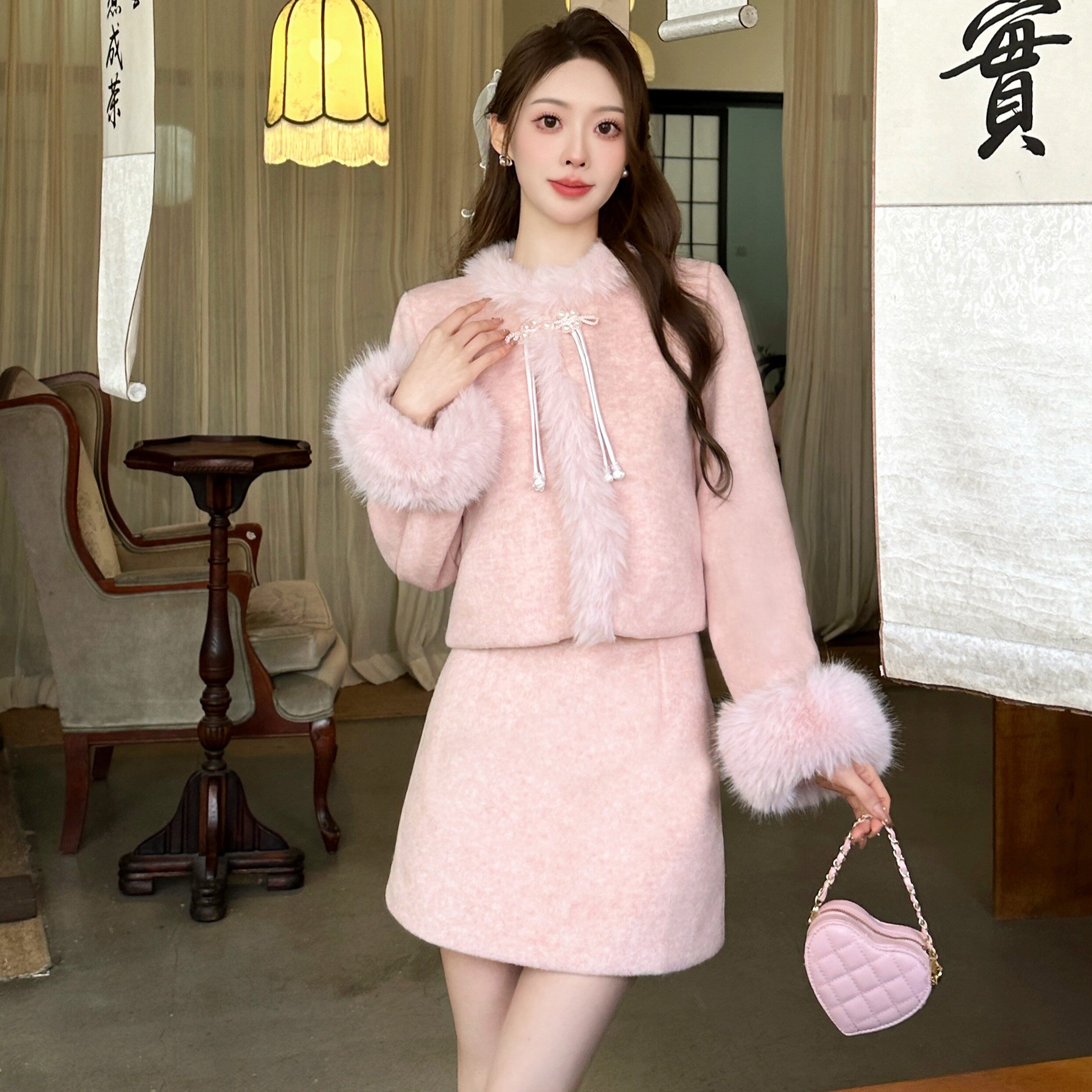 小个子穿搭定制2025冬季新款小香风时尚套装裙新中式羽绒服外套女
