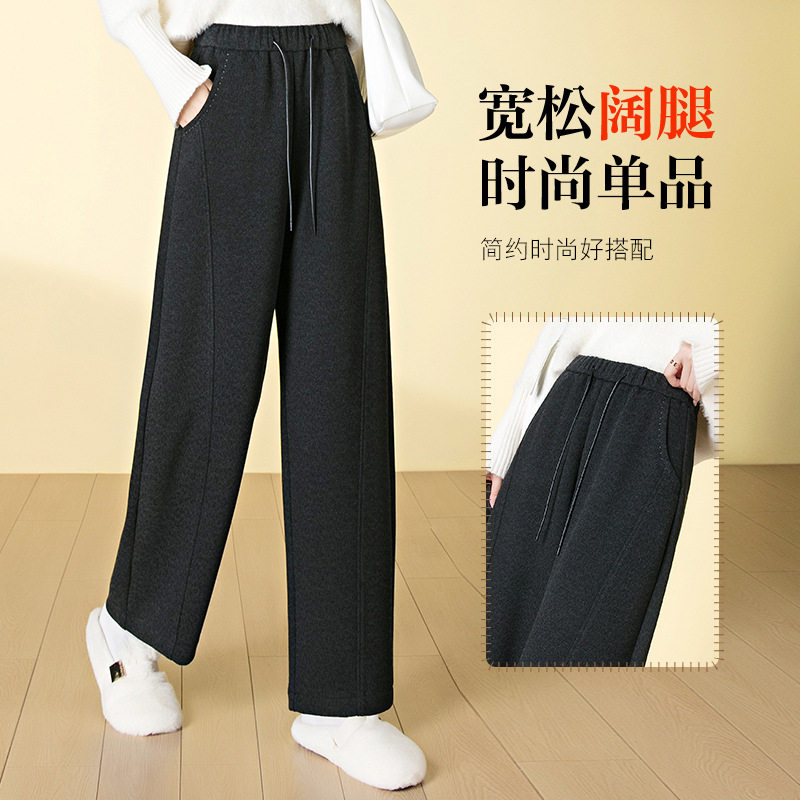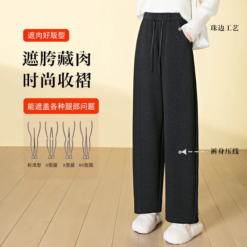 株洲和顺圣女裤豹纹暗纹醋酸羊毛呢弯刀裤加厚高腰休闲垂感直筒裤
