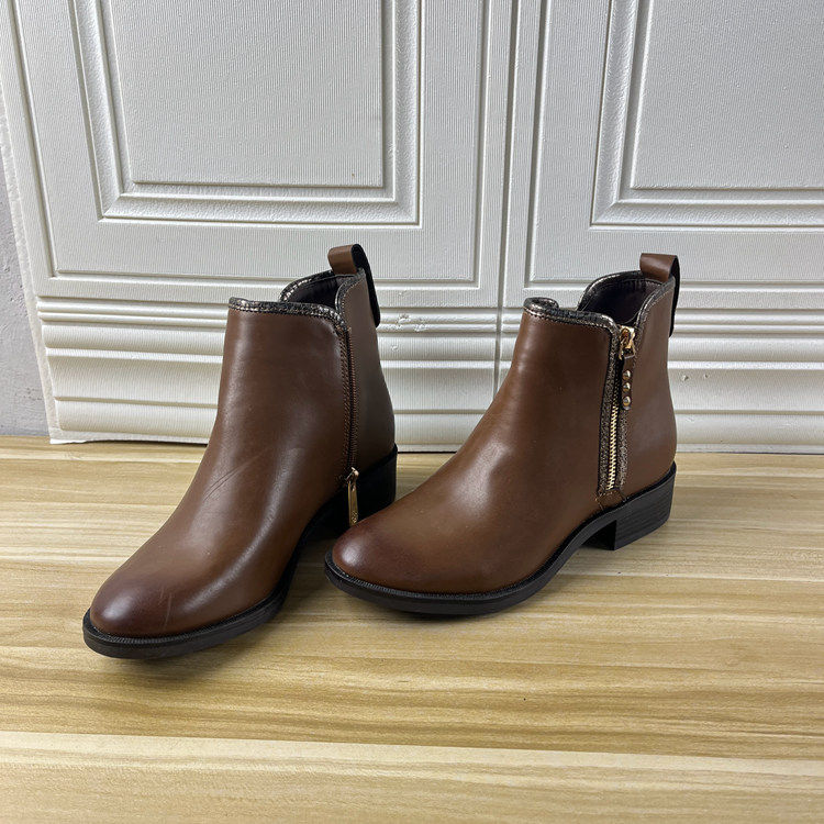 Lady Shoes杂款37码外贸原单独码女靴圆头纯色粗跟时尚短靴长靴