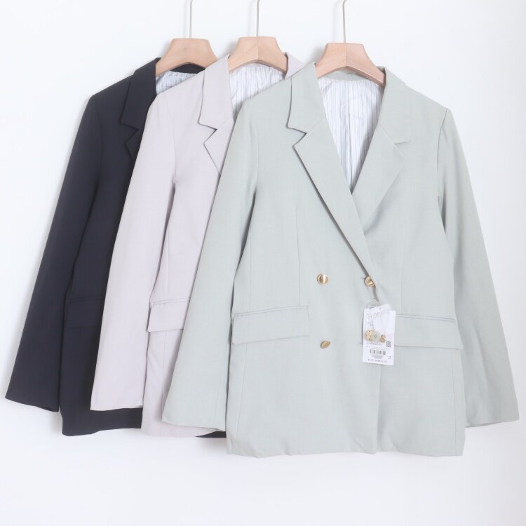 D190122日单春季新款V*S双排金属扣微宽松显瘦女休闲通勤西装外套