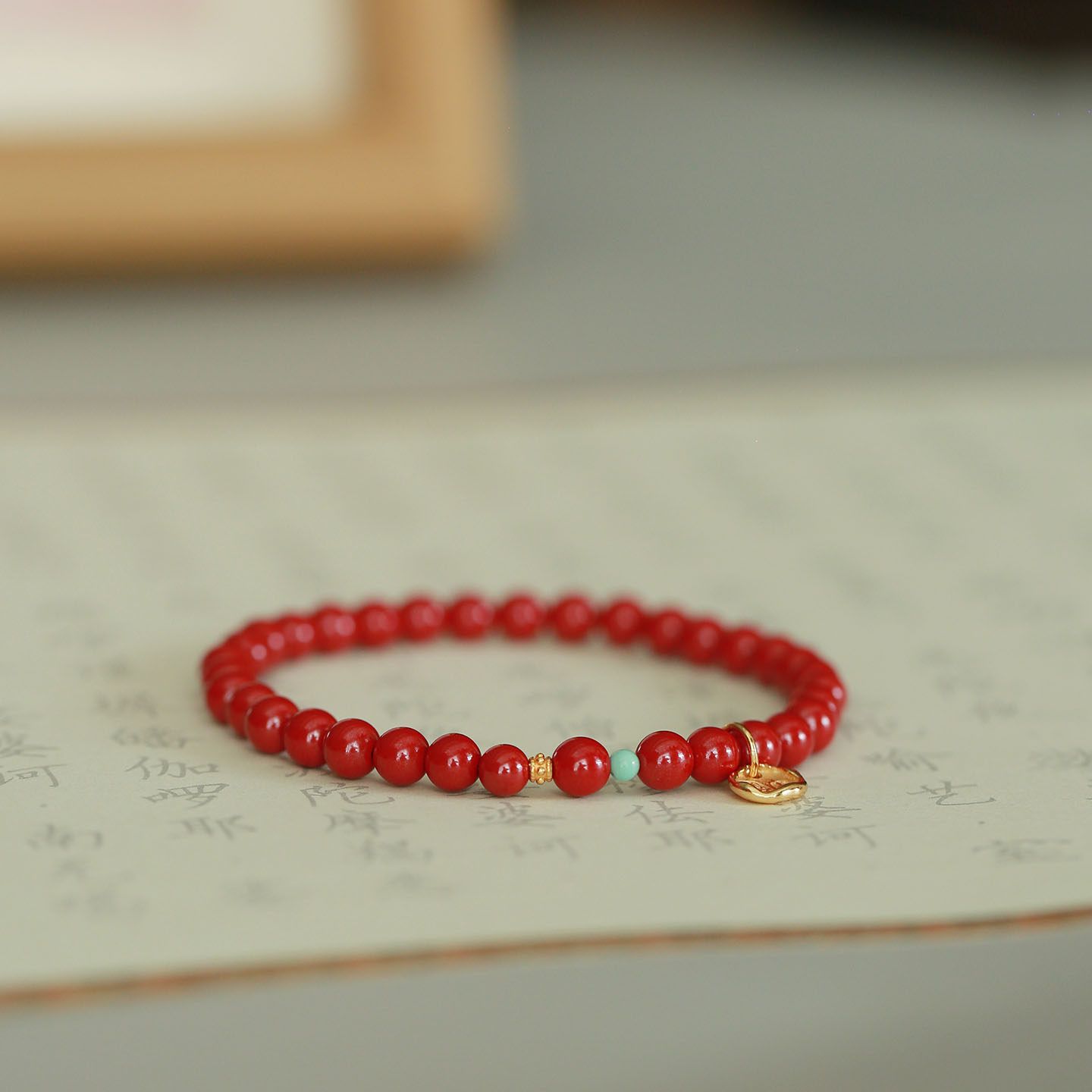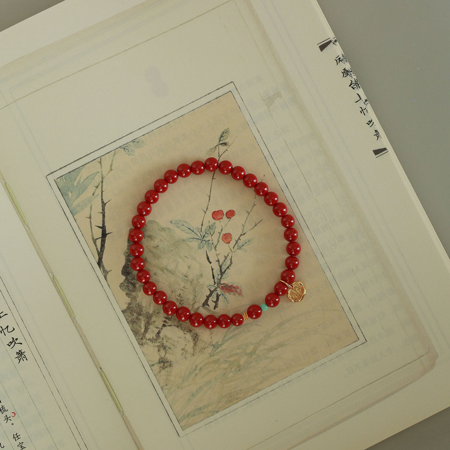 一抹朱砂/原创设计小众新中式本命年朱砂925银国风手链男女礼物