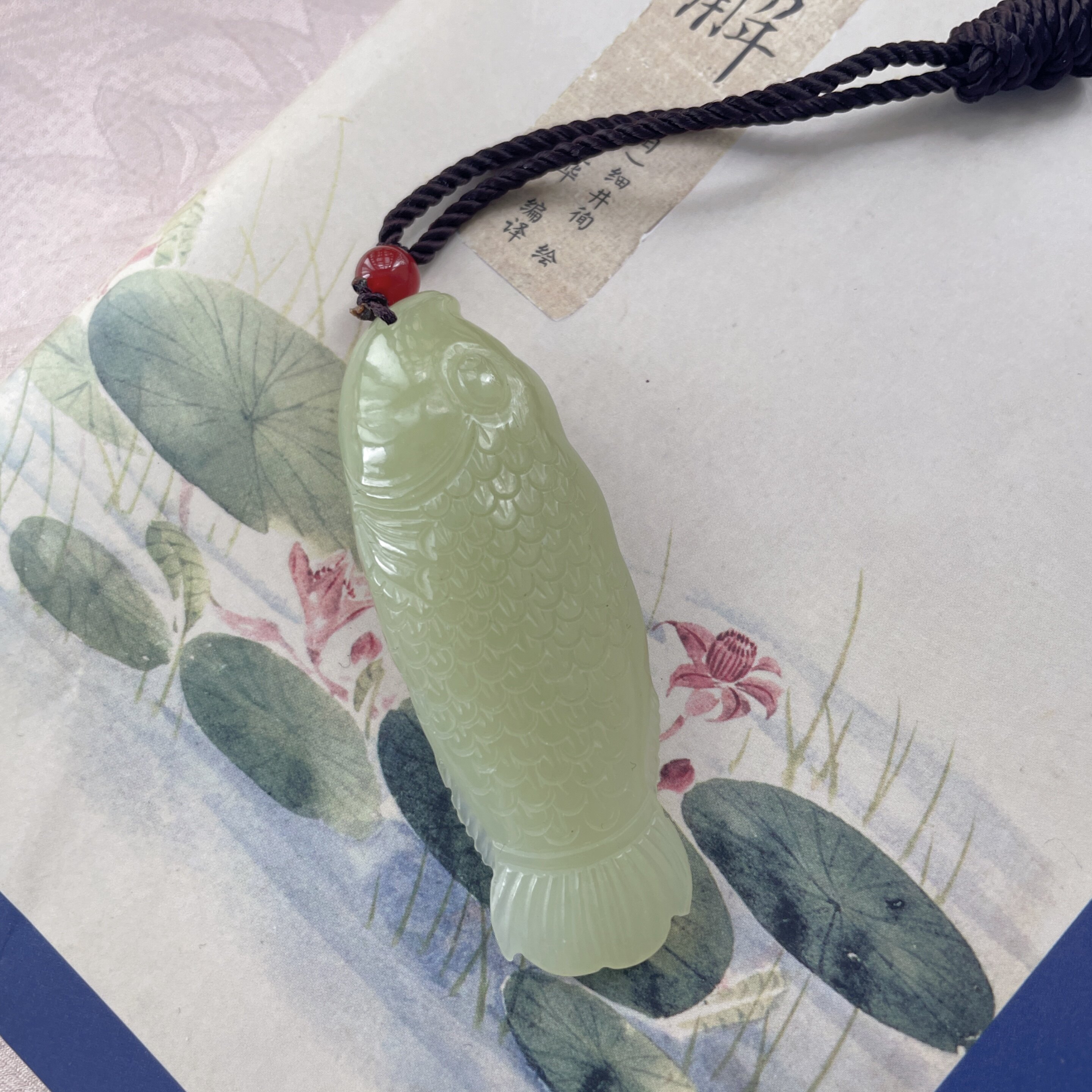 新疆和田玉黄玉年年有鱼吊坠天然玉石挂件男女福利款