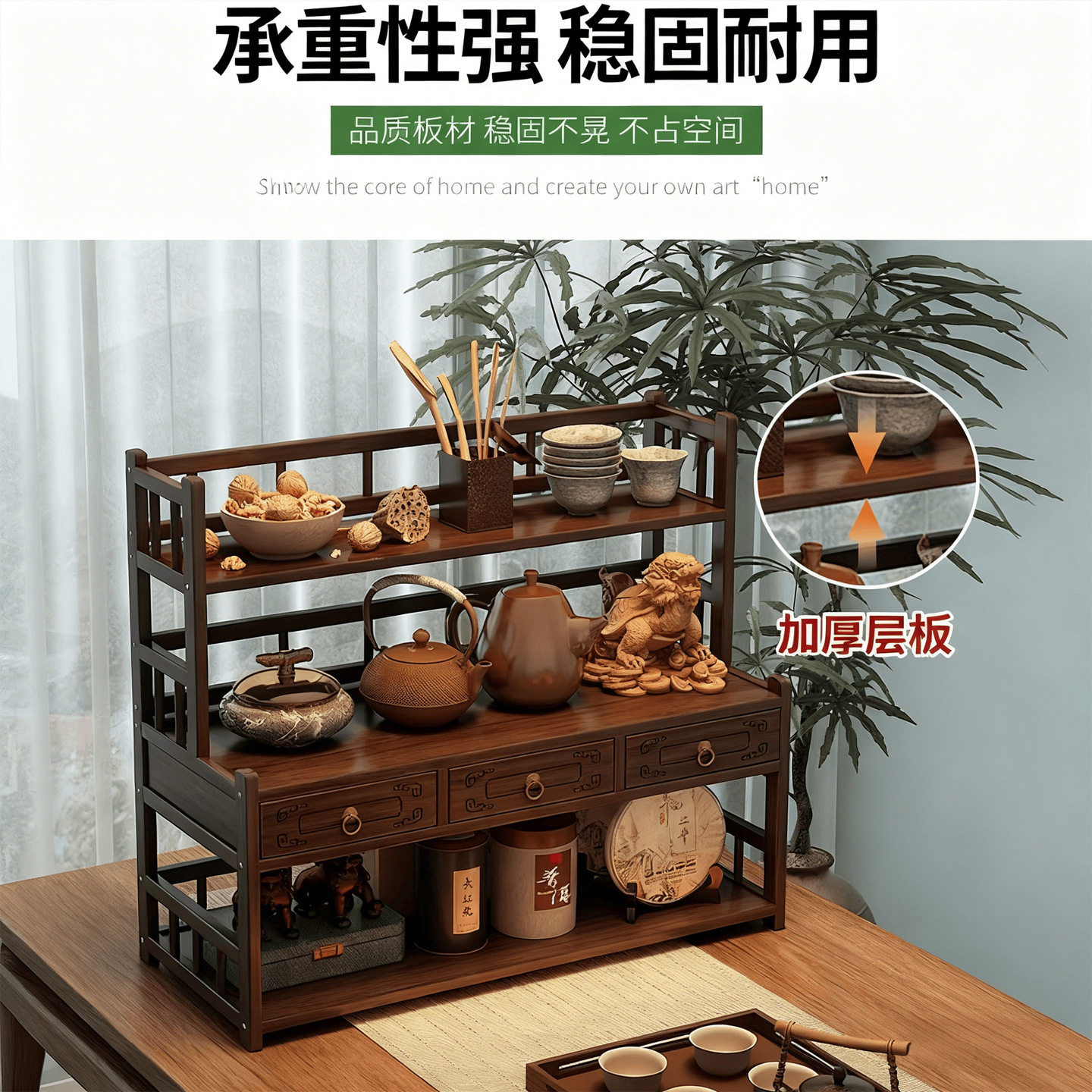 桌面博古架小型新中式茶具紫砂壶置物架子摆件台茶叶放置架收纳柜