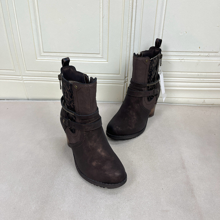 外贸原单粗跟短靴内里加绒简约时尚新款气质百搭侧拉链圆头舒适