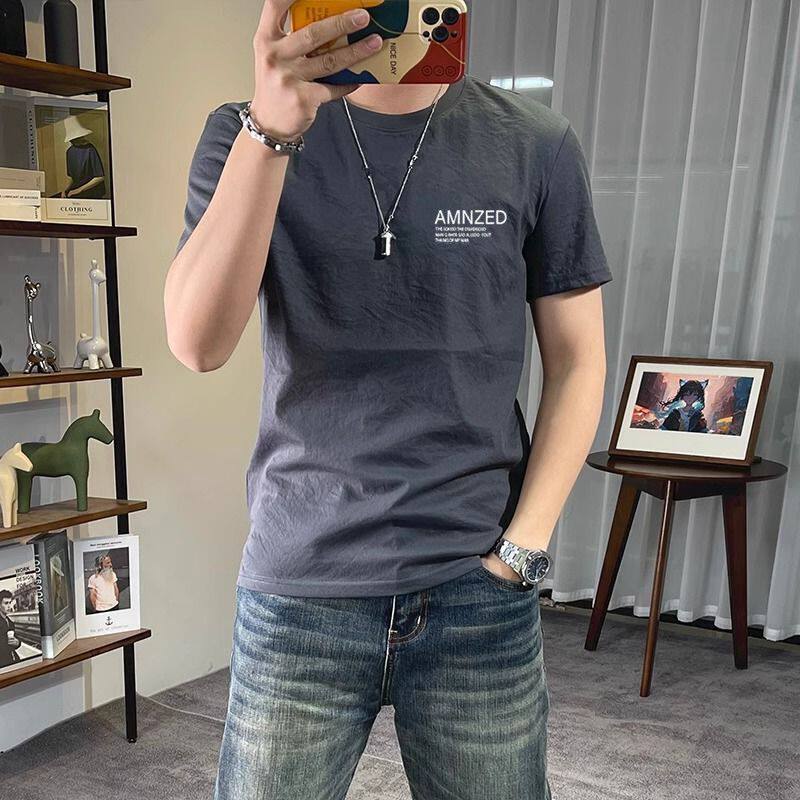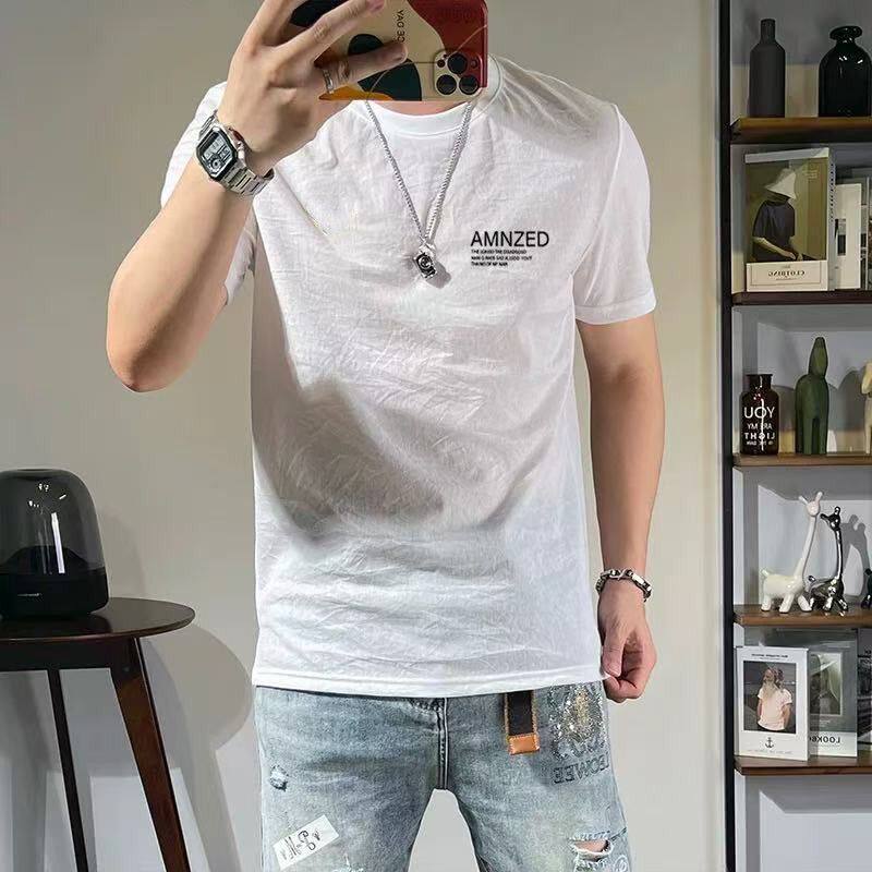 冰丝棉麻短袖素色百搭夏季新款麻料t恤修身圆领净版男士休闲半袖T