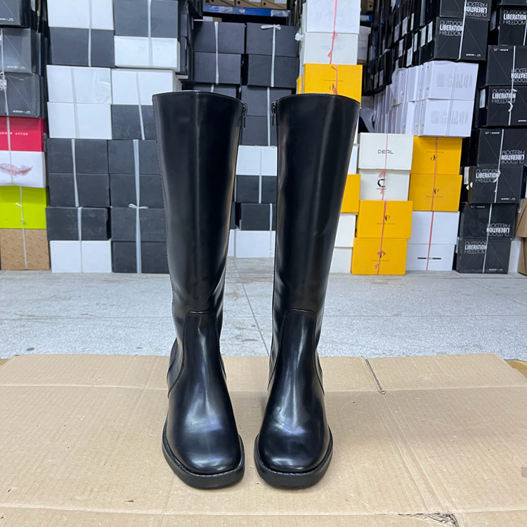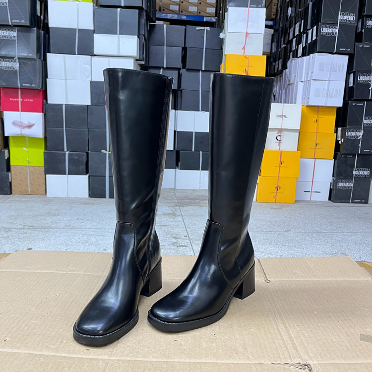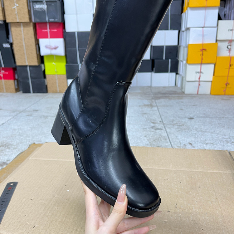 外贸原单女靴微瑕时尚百搭圆头纯色粗高跟侧拉链时装长靴瘦瘦靴