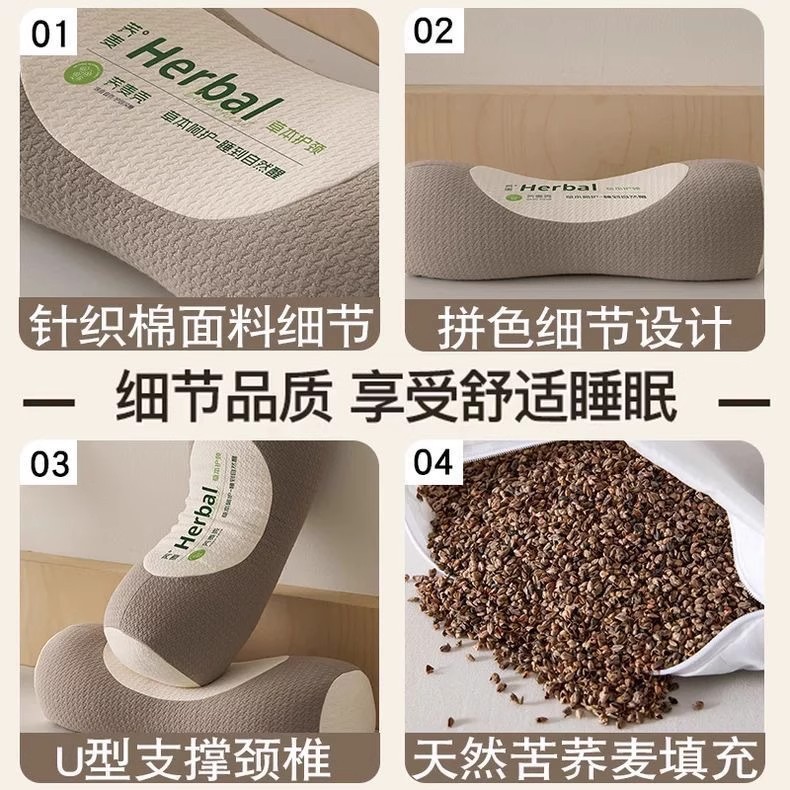 护颈专用荞麦枕护颈椎睡眠单人助一只装枕芯一对成人圆柱牵引腰