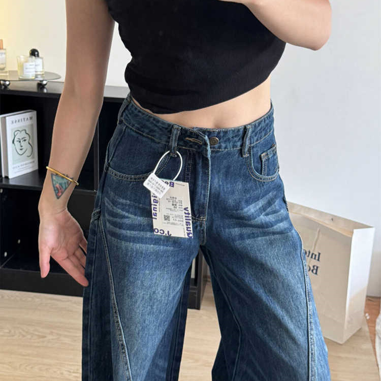 首页> 女装> 美式复古弯刀牛仔裤女夏秋季高腰显瘦宽松直筒阔腿梧桐镰刀长裤子