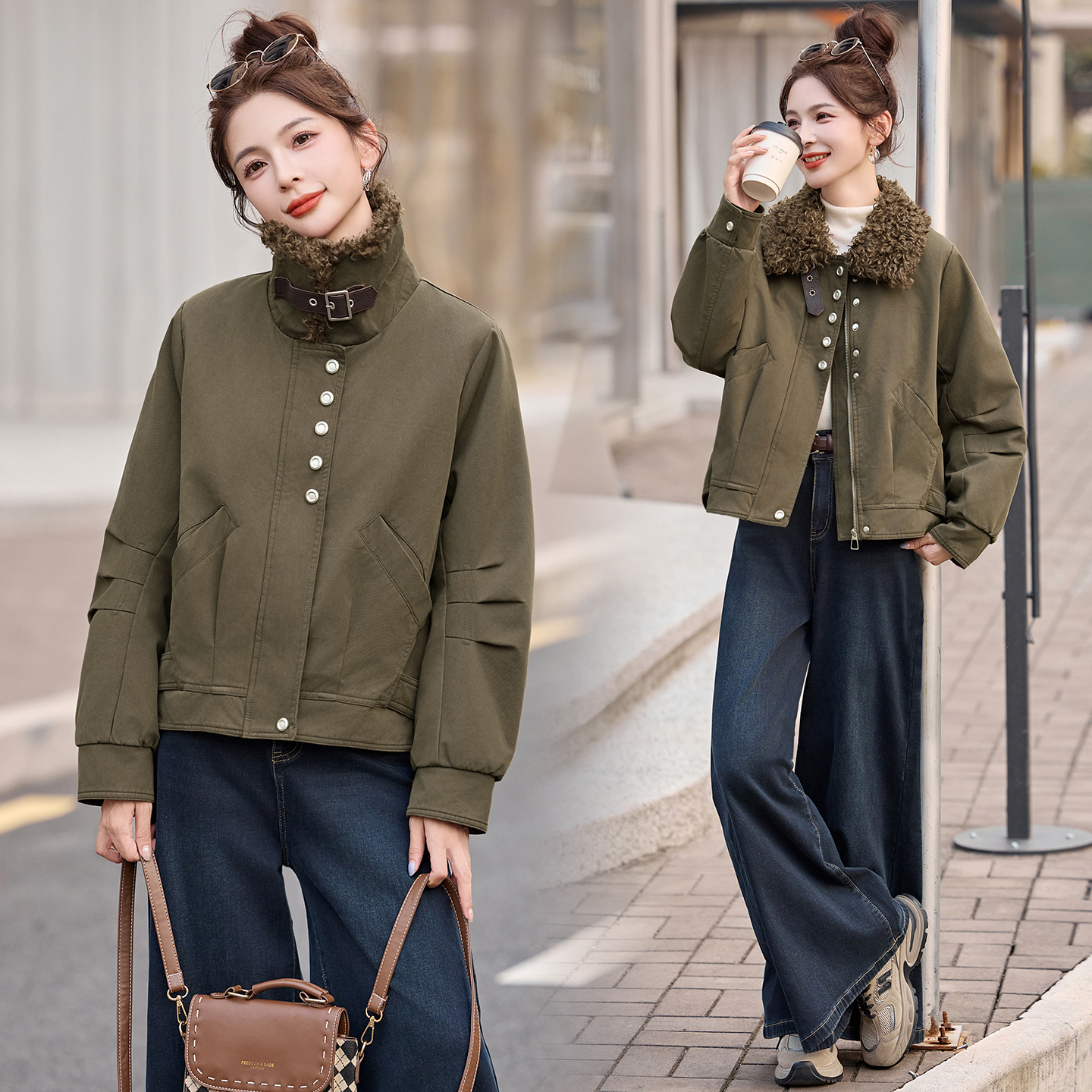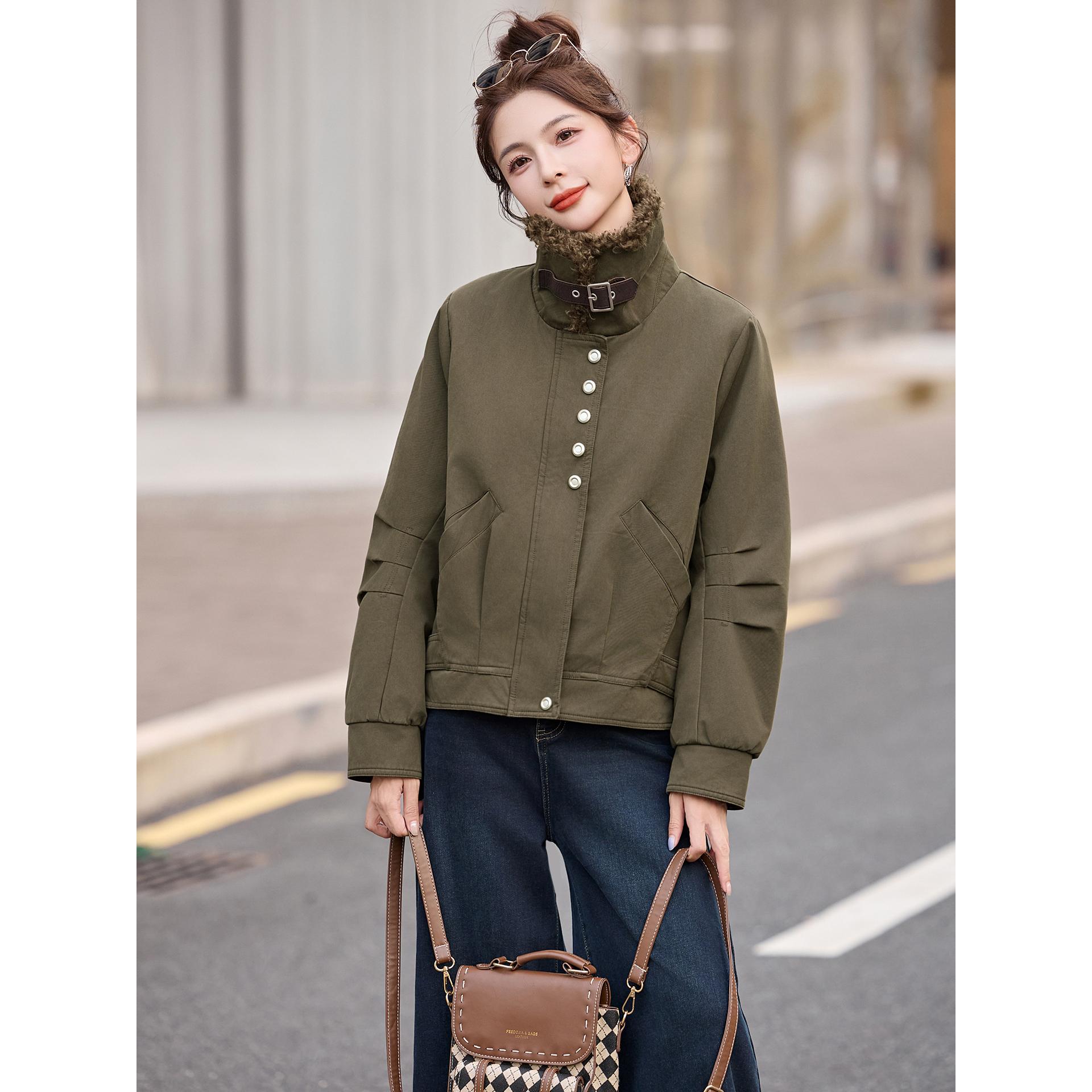 实拍十三行高品质女装2025秋新款时尚设计感羊羔毛短款外套
