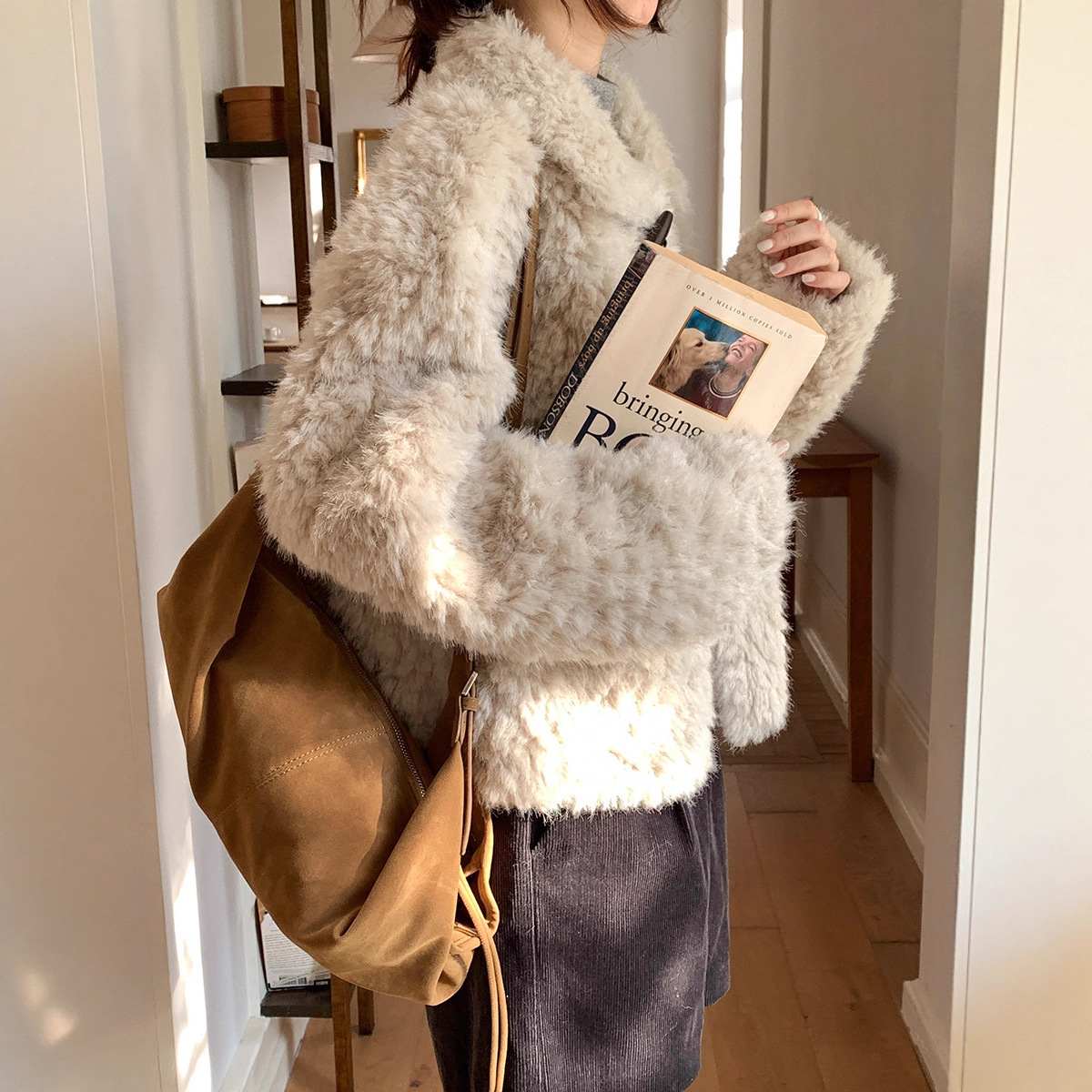 牛角扣羊羔毛外套女广州十三行2025冬季新款韩版宽松翻领保暖上衣