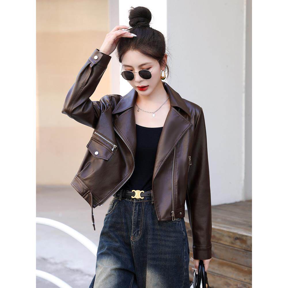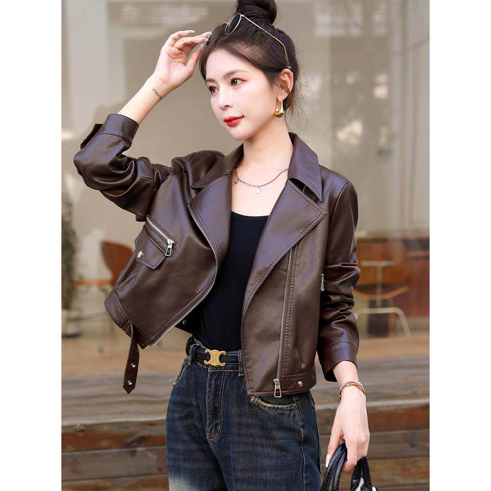 2025新款春秋爆款皮衣外套女款短款机车棕色小个子高级感pu皮夹克
