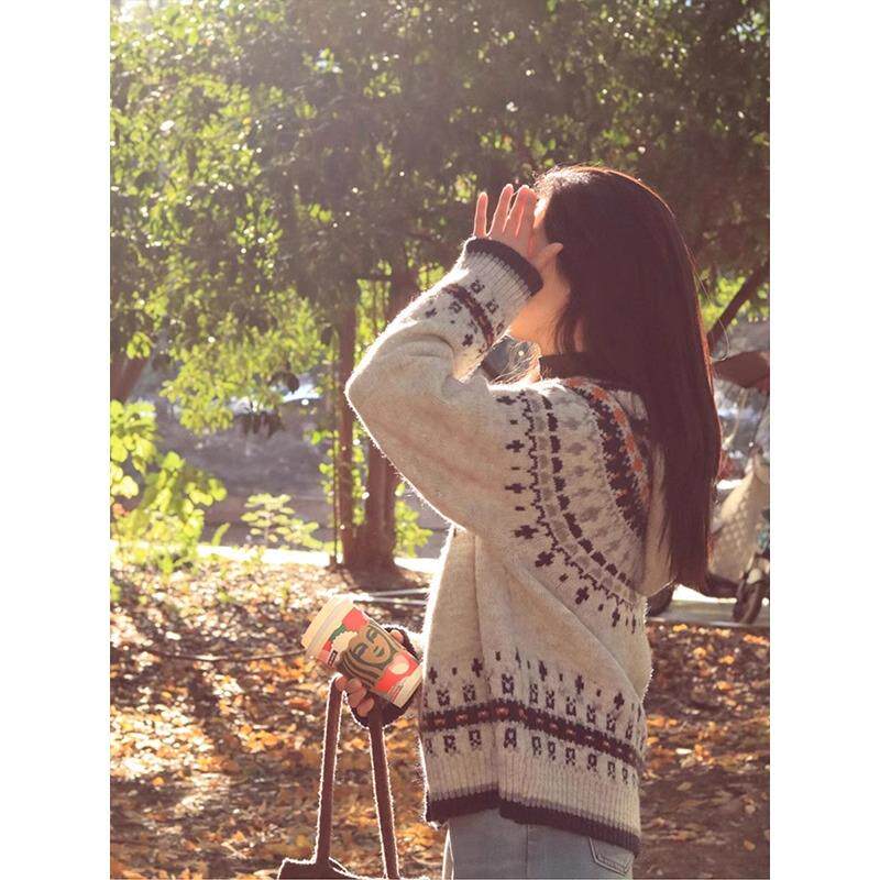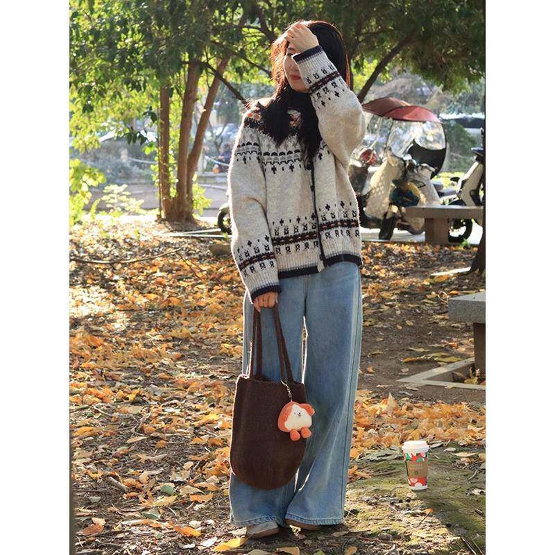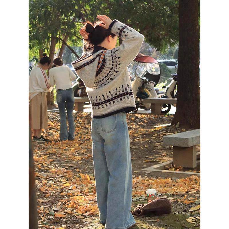 费尔岛复古连帽毛衣外套女秋冬慵懒风外穿软糯针织开衫设计感上衣
