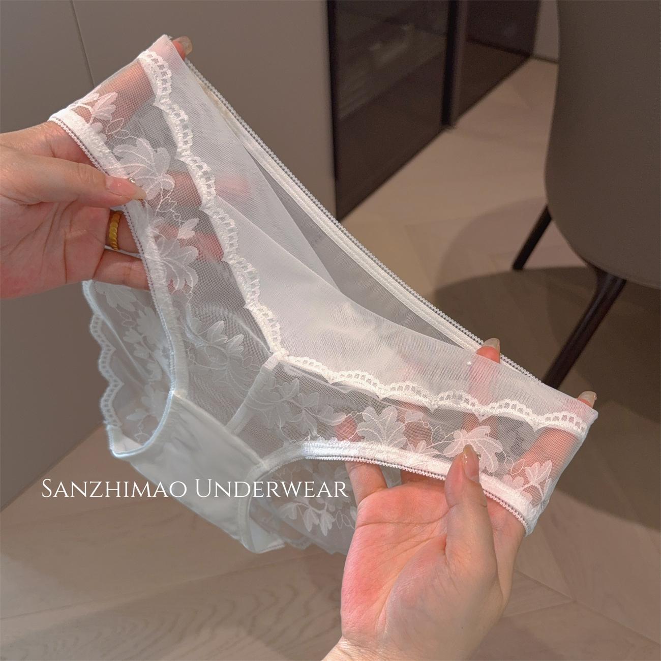 2025新款法式蕾丝女士内裤缎面镂空网纱透气全棉裆女低腰三角裤