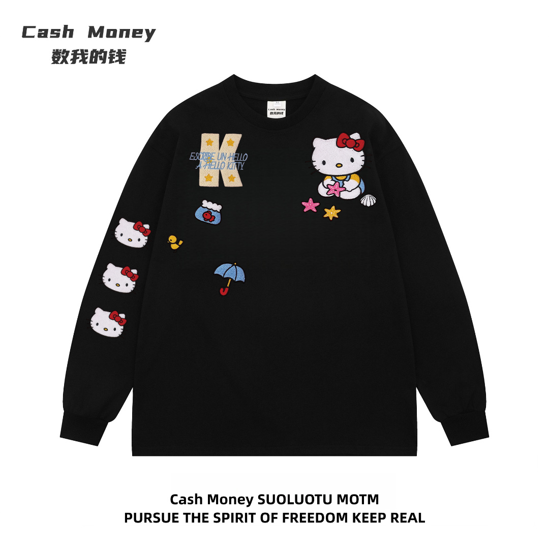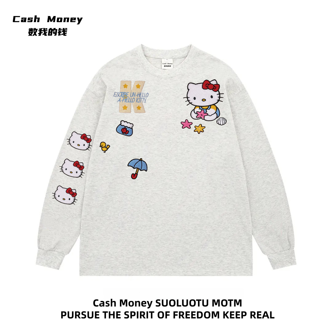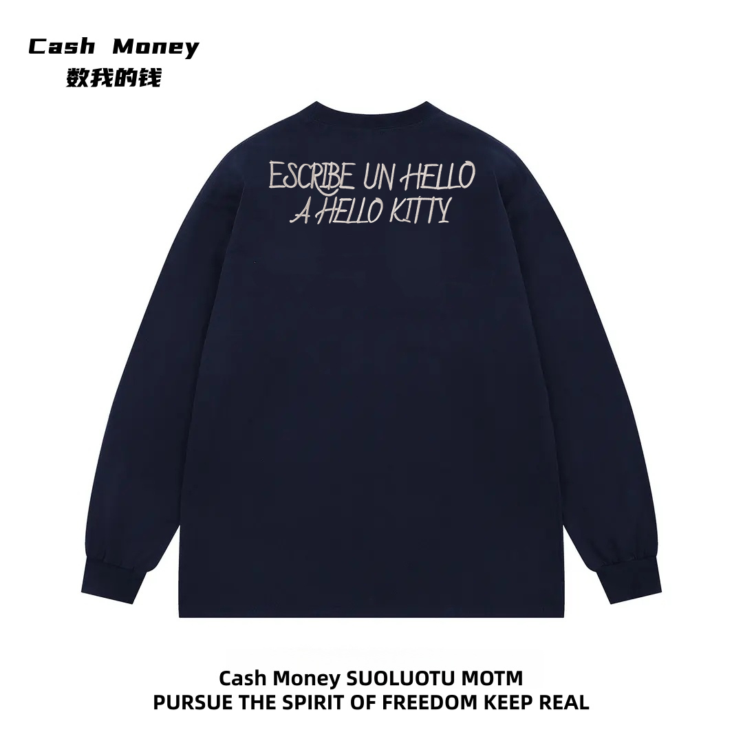 Cash Money数我的钱 美式Kitty猫印花长袖T恤男女百搭上衣ins休闲