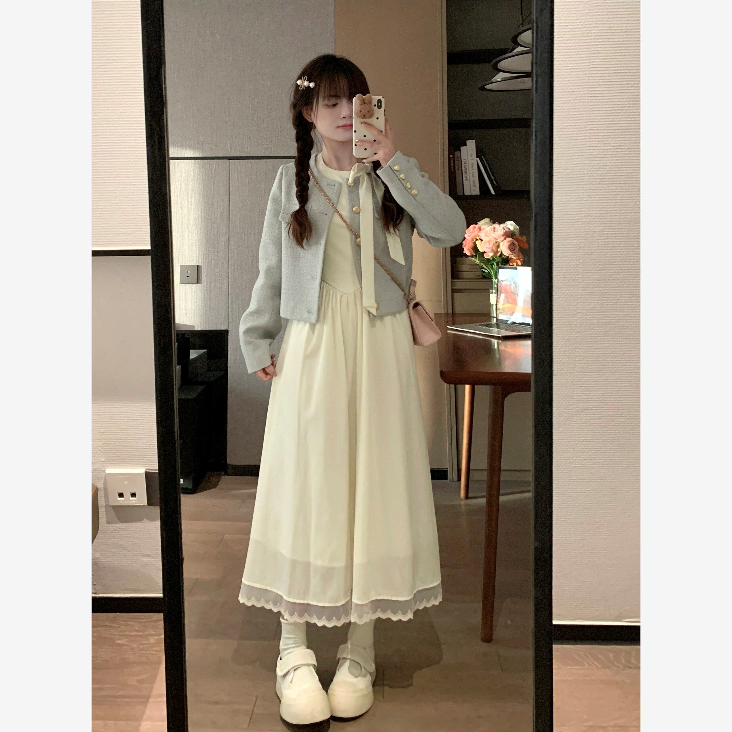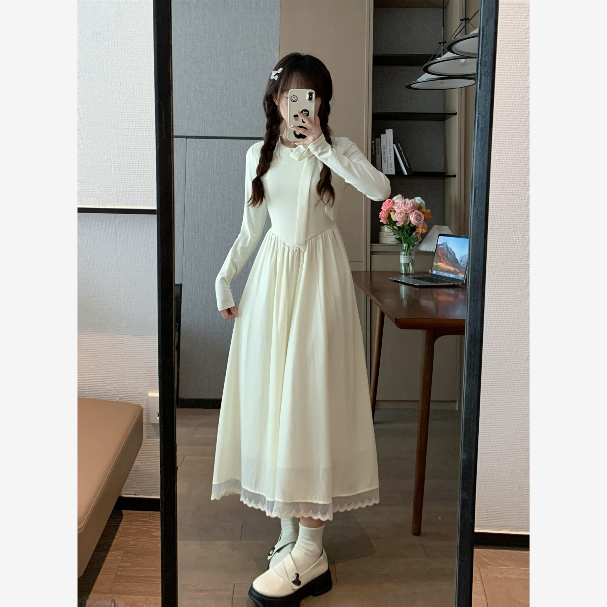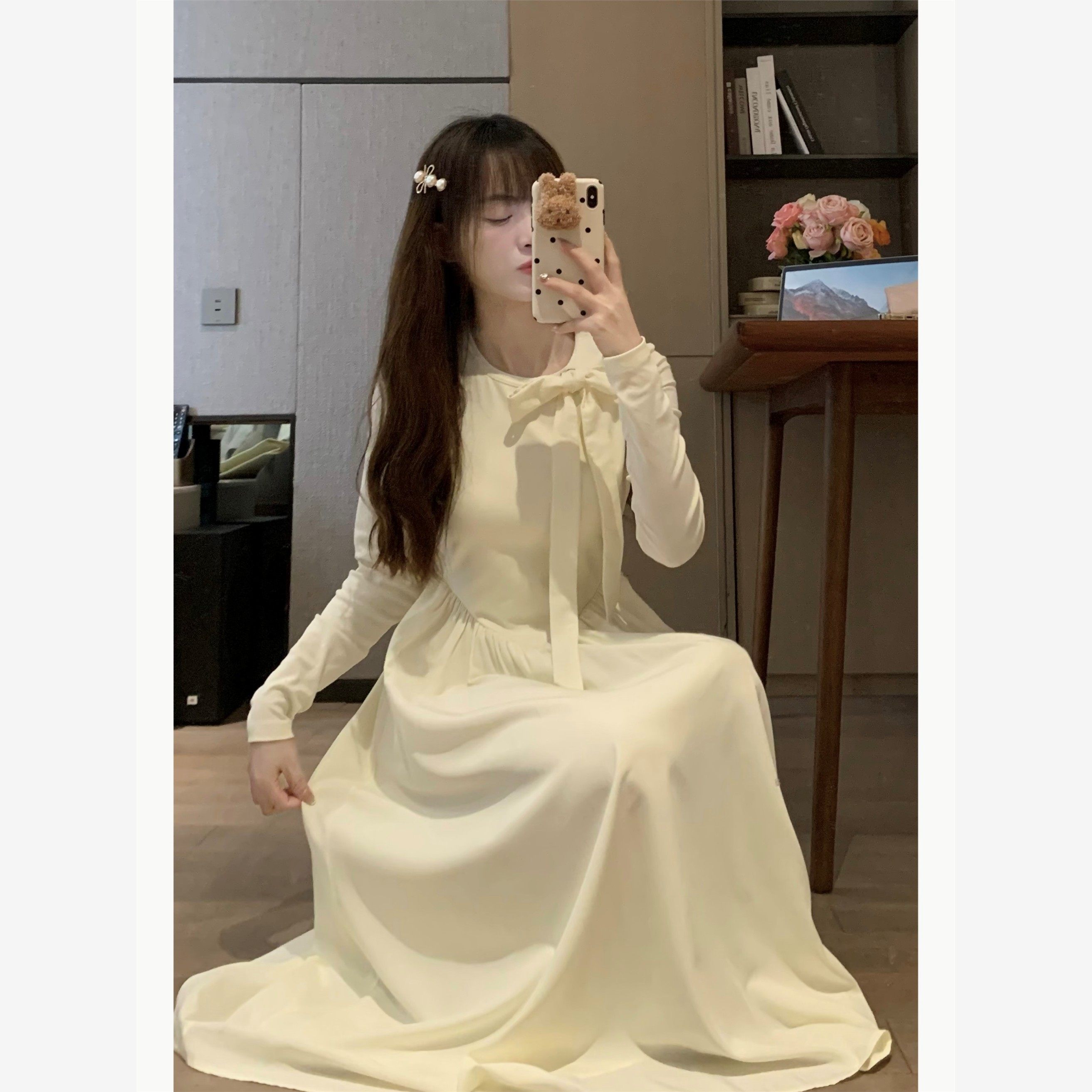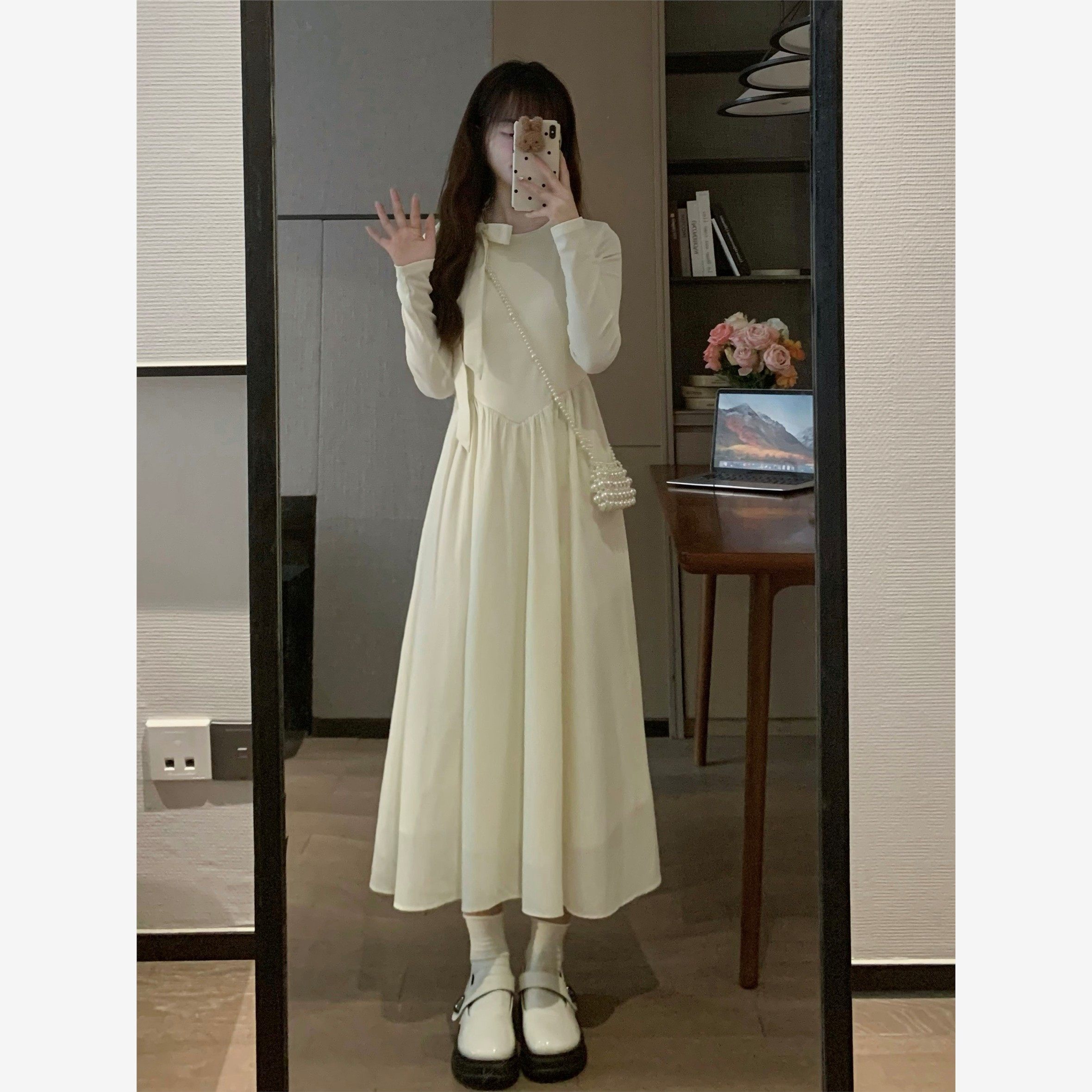 ms甜末末法式收腰梨形身材茶歇约会长裙新中式初恋白色长袖连衣裙