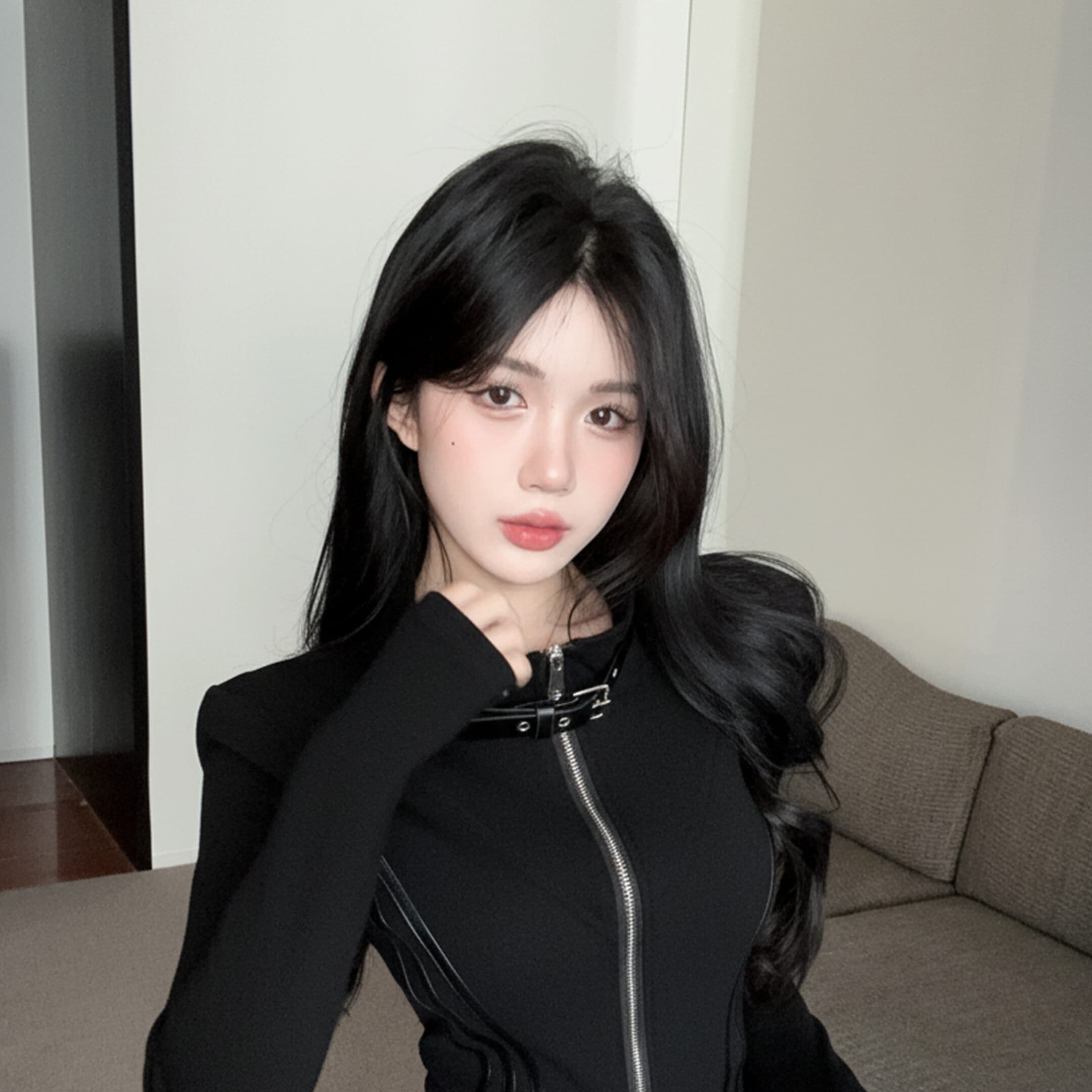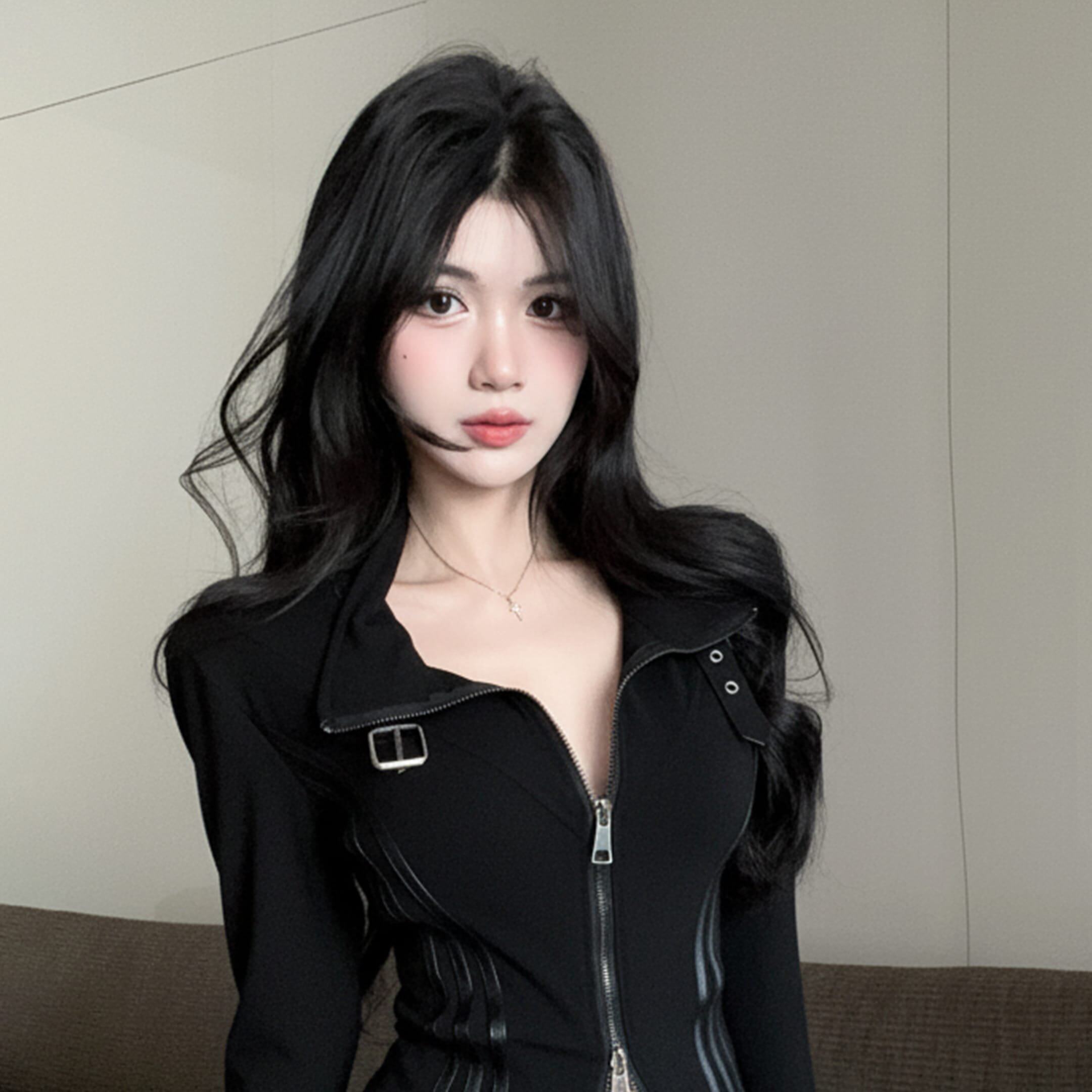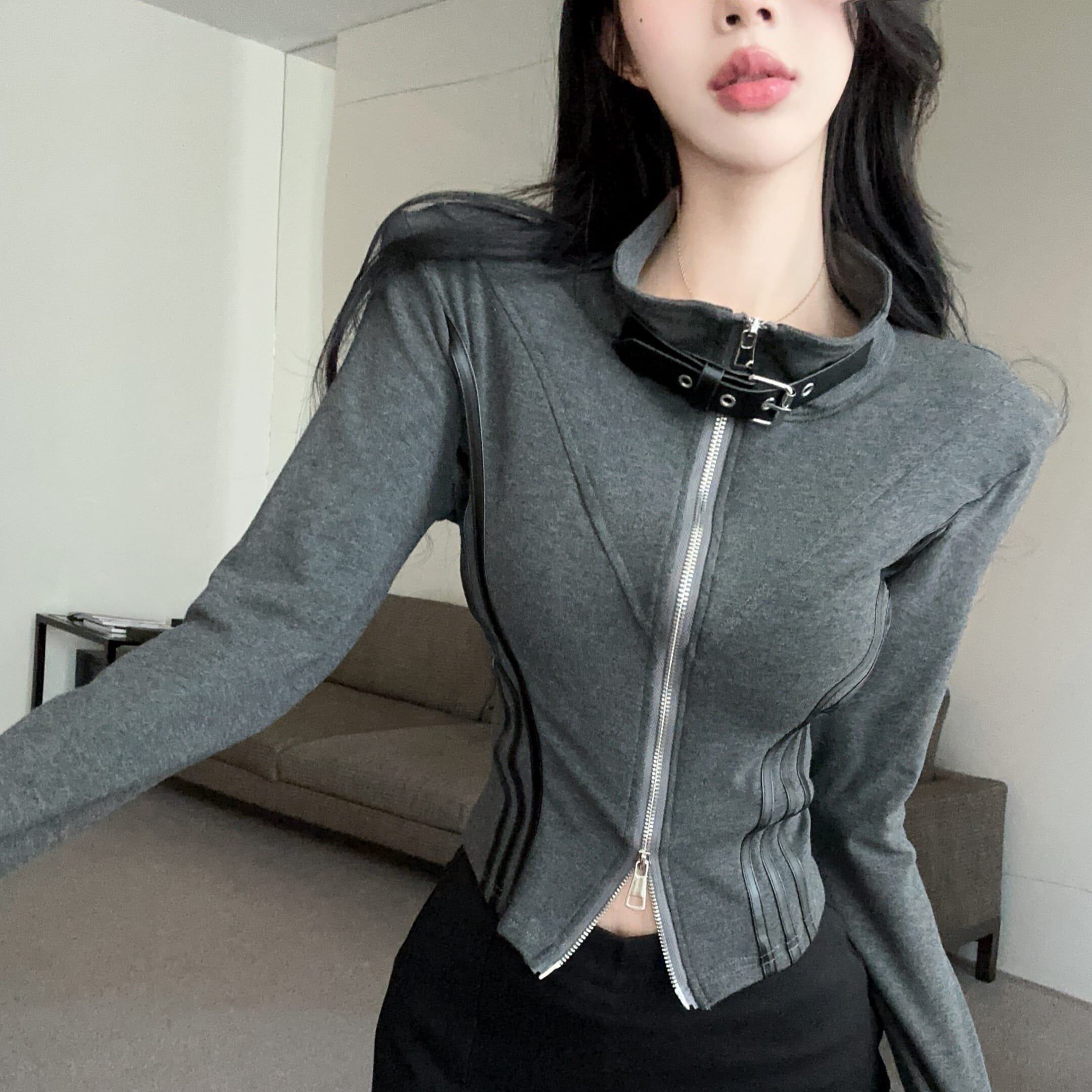 酷飒风设计感长袖翻领双拉链卫衣上衣女开衫显瘦外套
