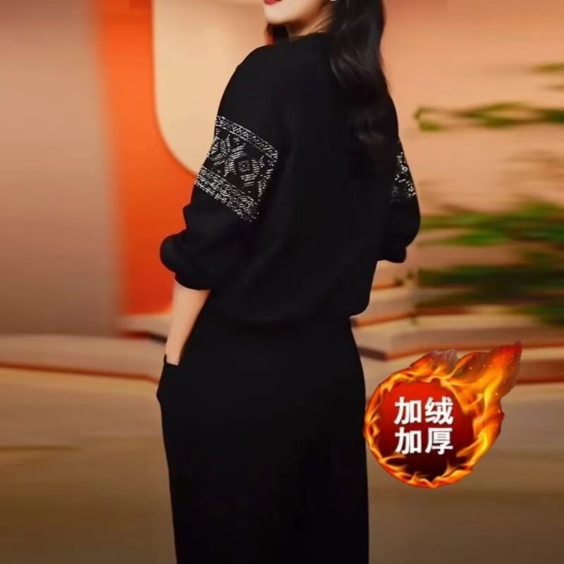 秋冬新款加绒加厚休闲时尚运动套装直筒裤减龄显瘦时尚卫衣两件套