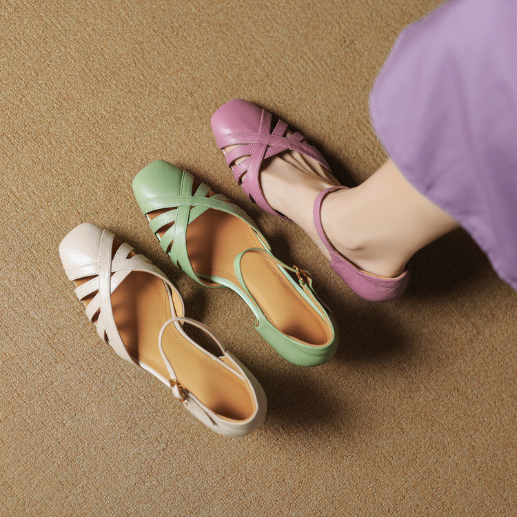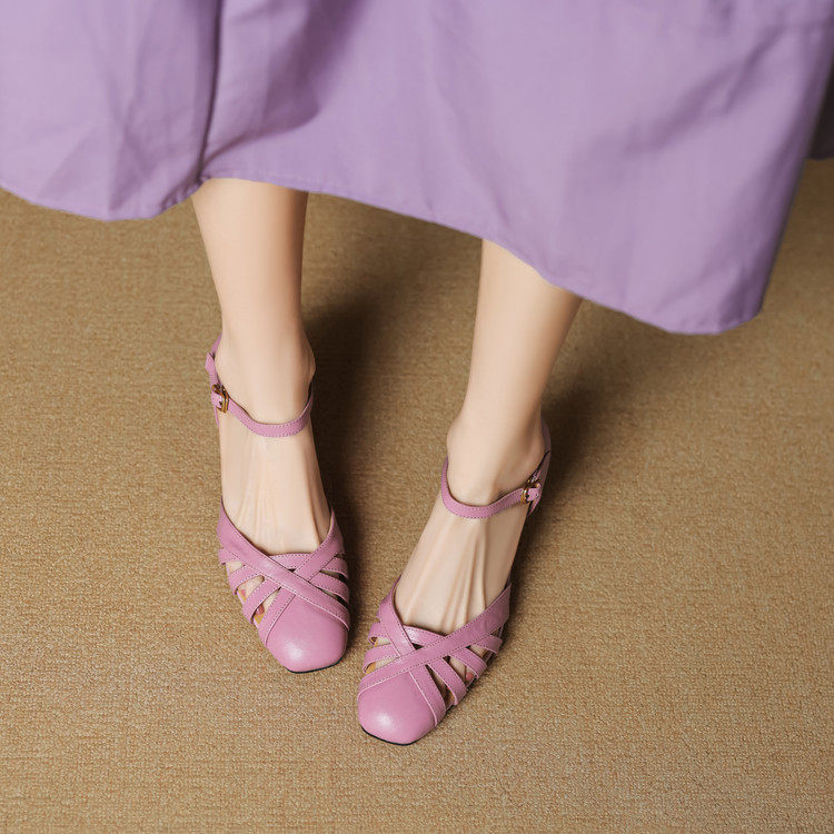 法式复古包头凉鞋女2025夏季新款真皮小众镂空粗跟罗马高跟单鞋新