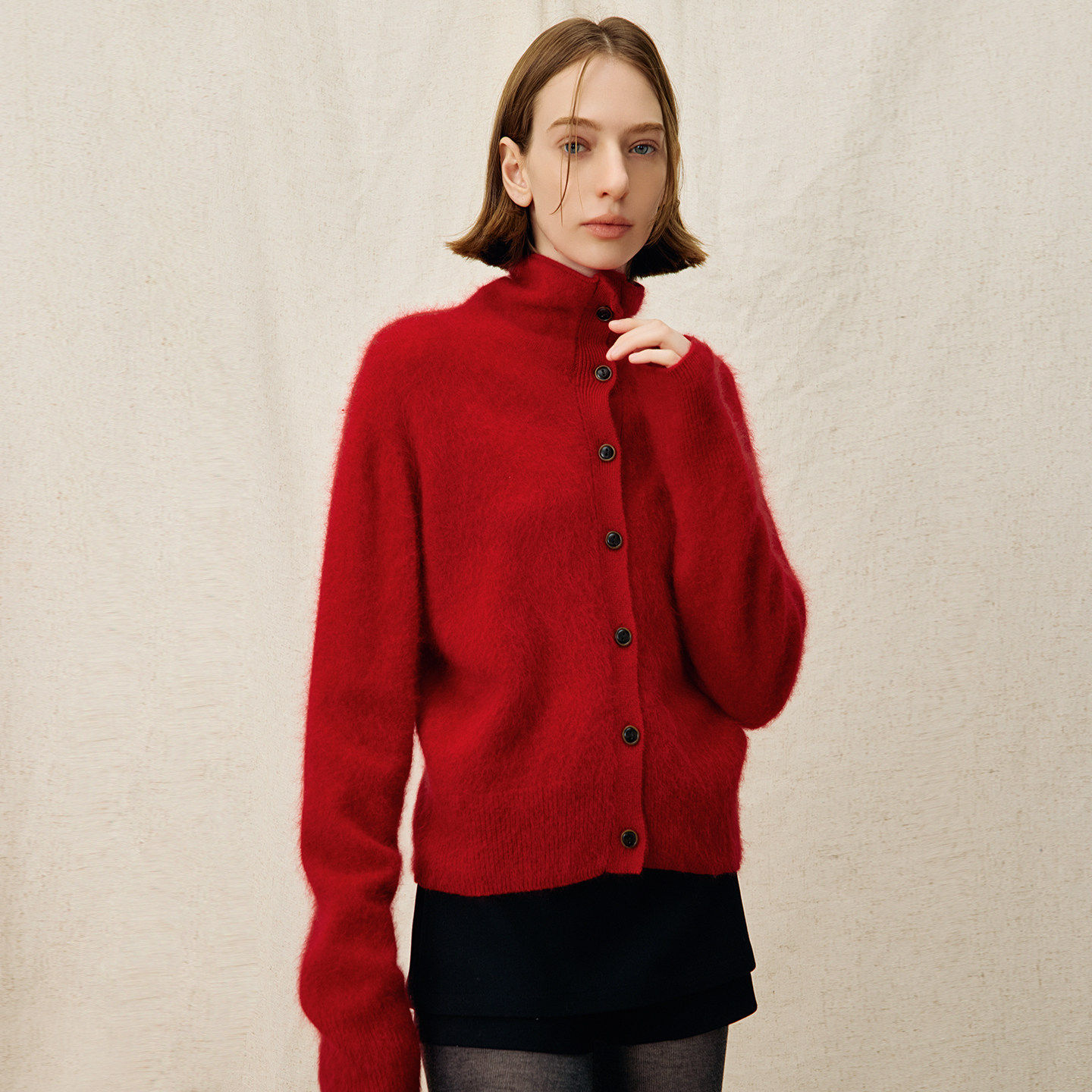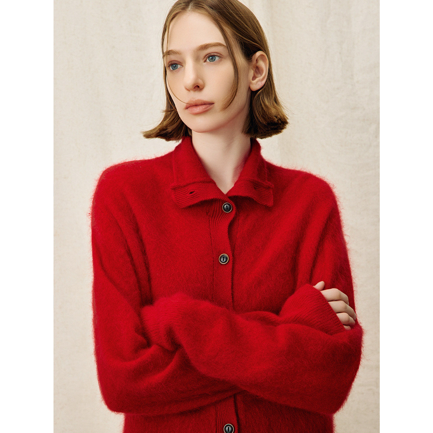 DNCY丨 95%羊毛 老钱风红色圣诞新年针织开衫女冬季新款毛衣外套