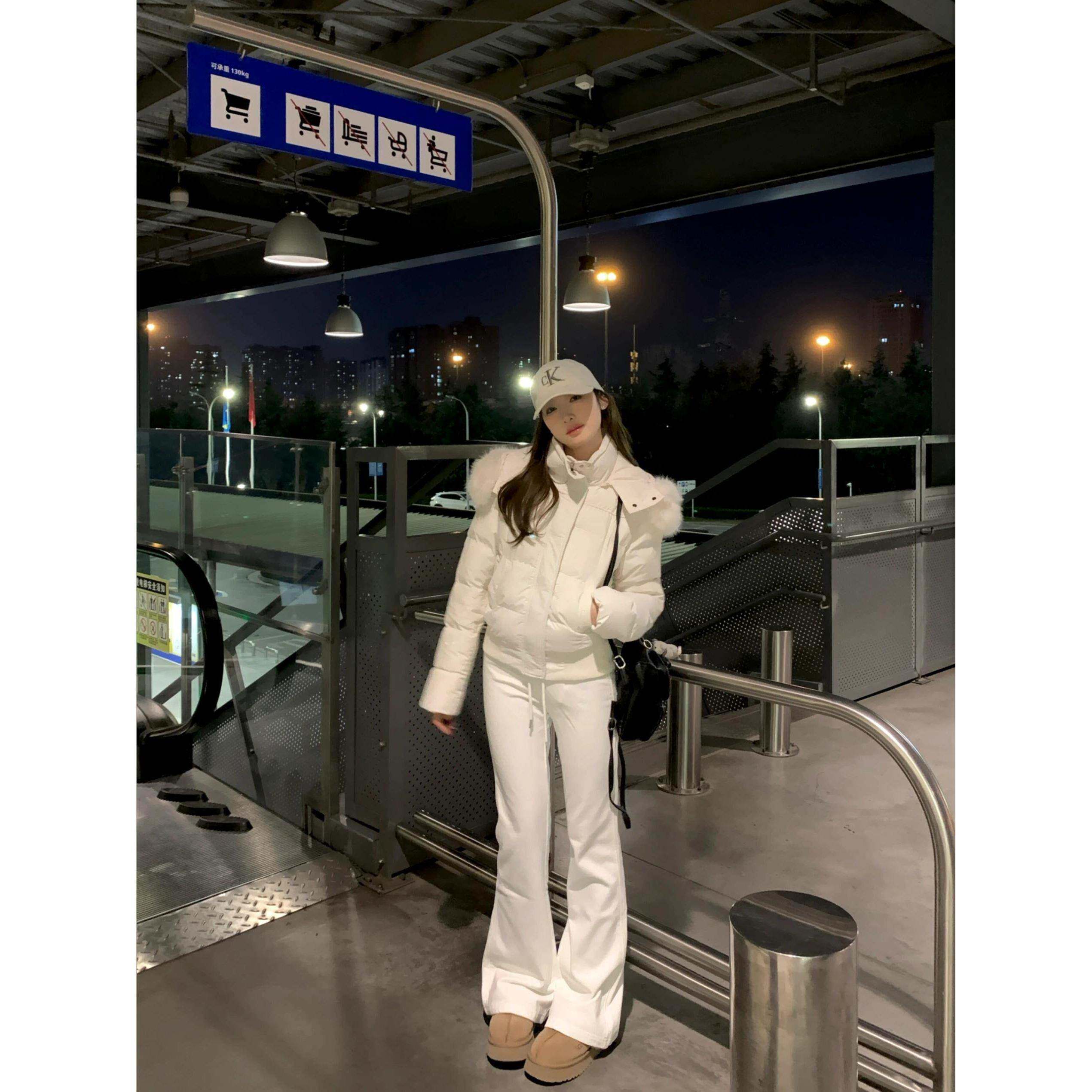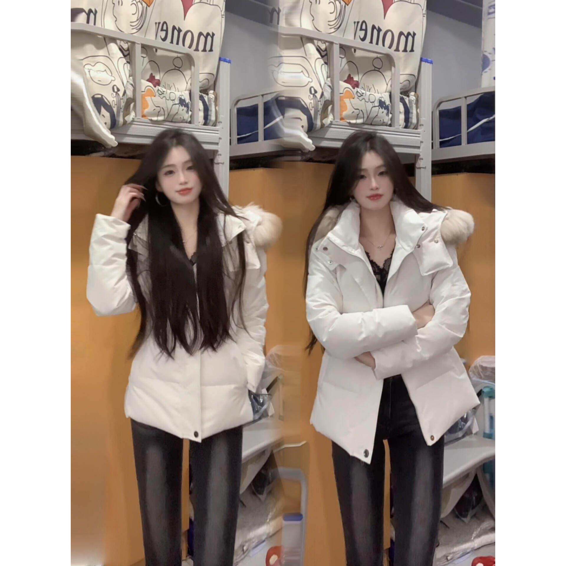 2025年新款收腰羽绒服女短款大毛领修身小个子白鸭绒加厚冬季外套