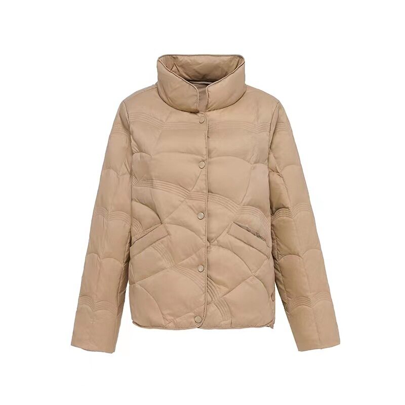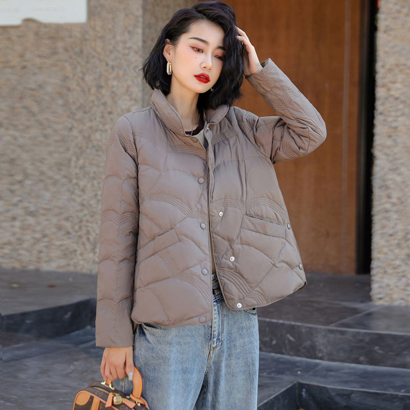 羽绒服女2025秋冬季新款短款立领格子纯色洋气白鸭绒女装保暖外套