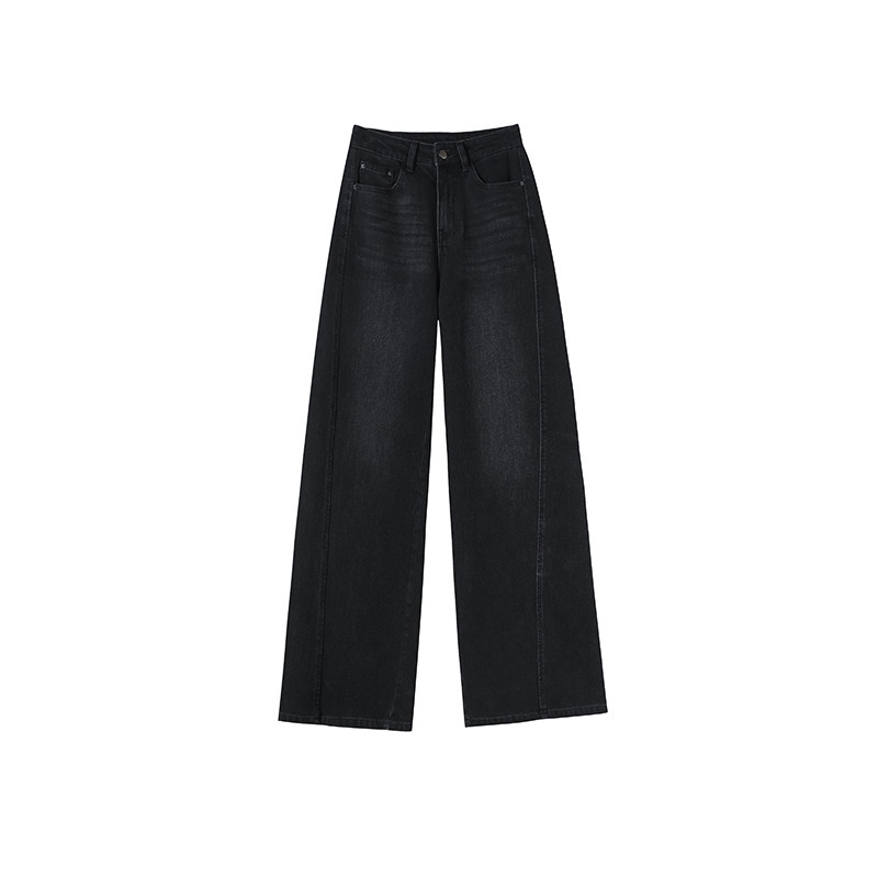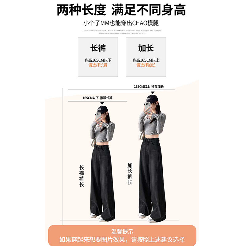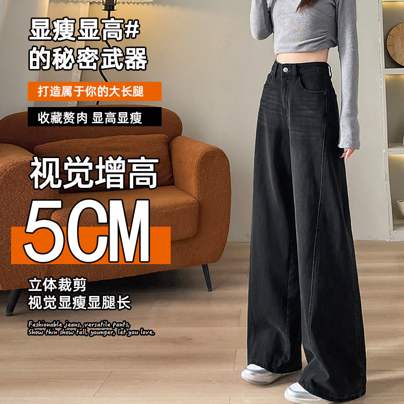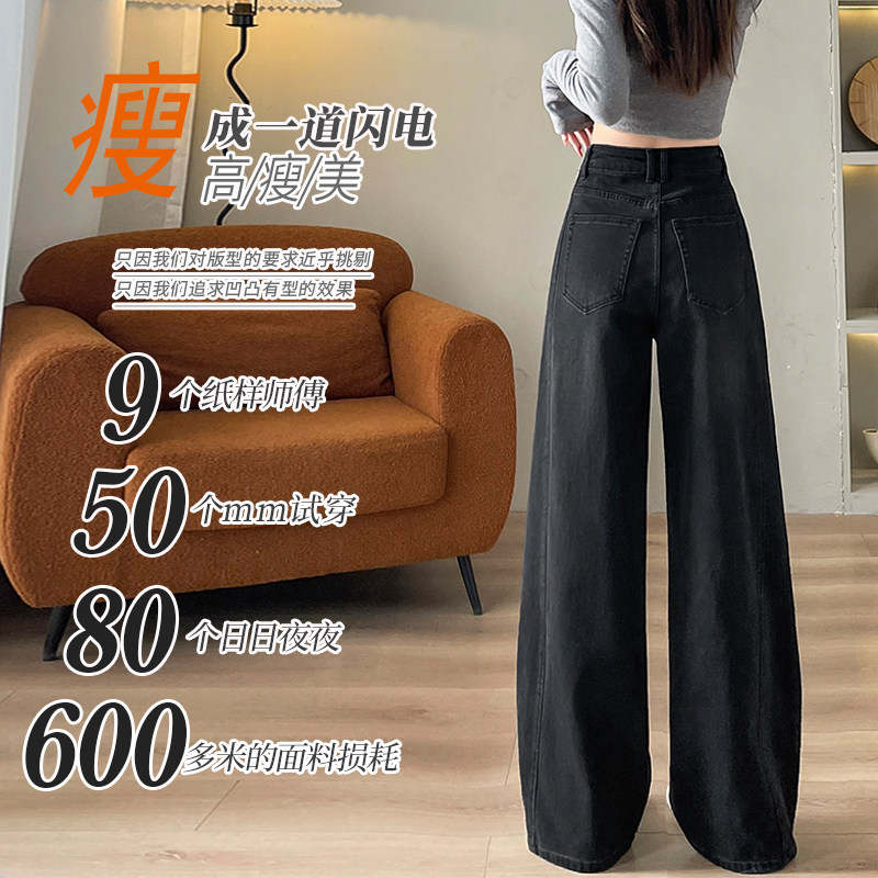 黑灰色弹力弯刀牛仔裤女2025年冬季新款加绒加厚拖地镰刀直筒裤子