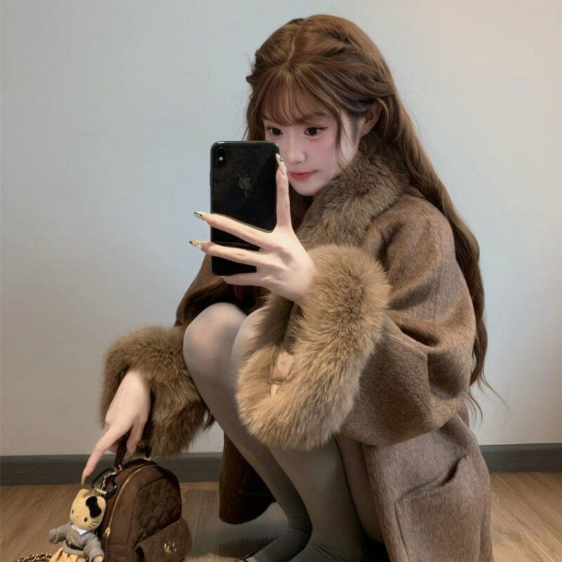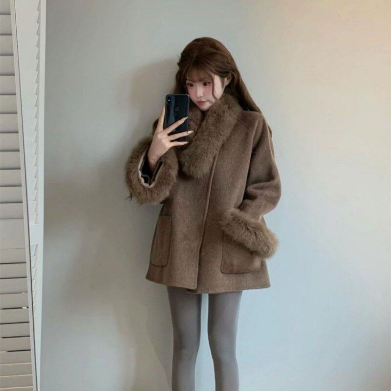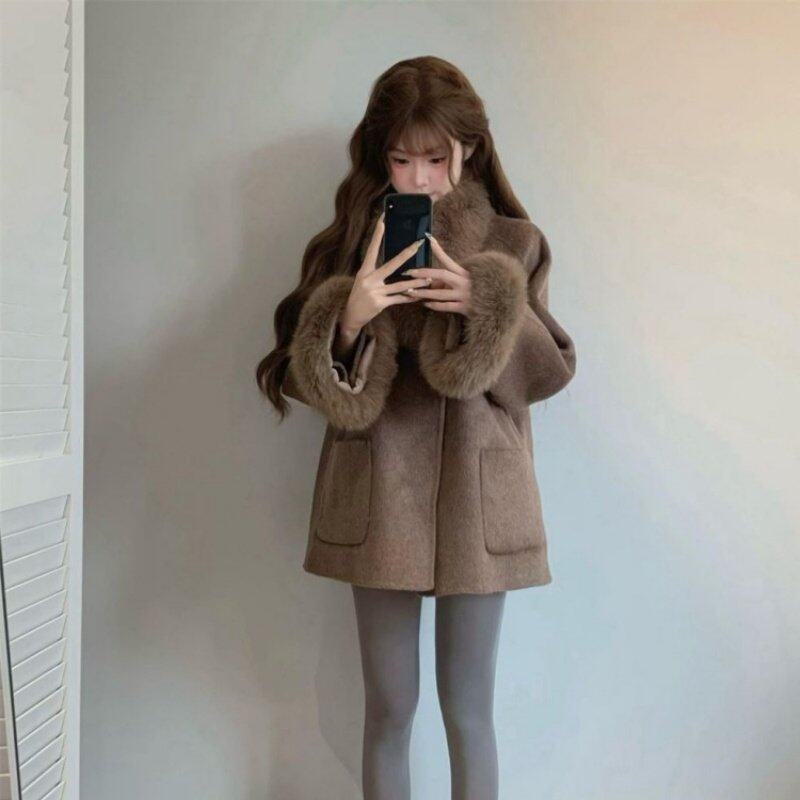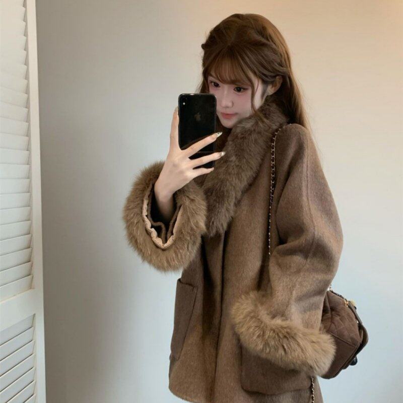【焦糖剧场】2025新款双面呢外套女秋冬毛领呢子大衣中长款上衣潮