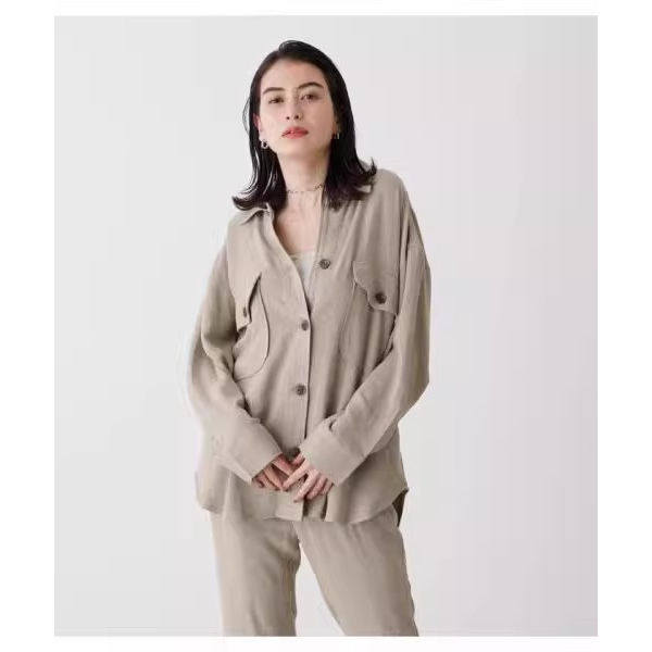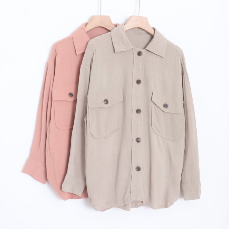 D12059日单客供料日系通勤单排扣宽松女纯色气质通勤棉麻长袖衬衫