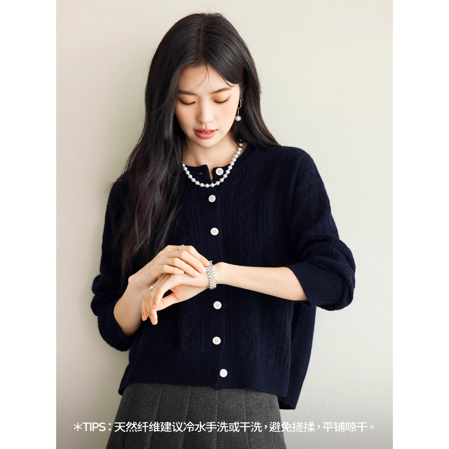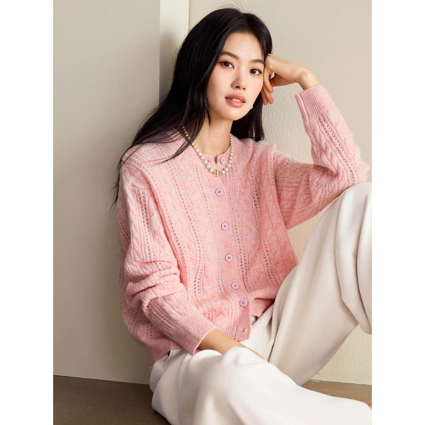 蒋欣代言伊折扣全羊毛绞花针织开衫女25款百搭休闲通勤1G9932501
