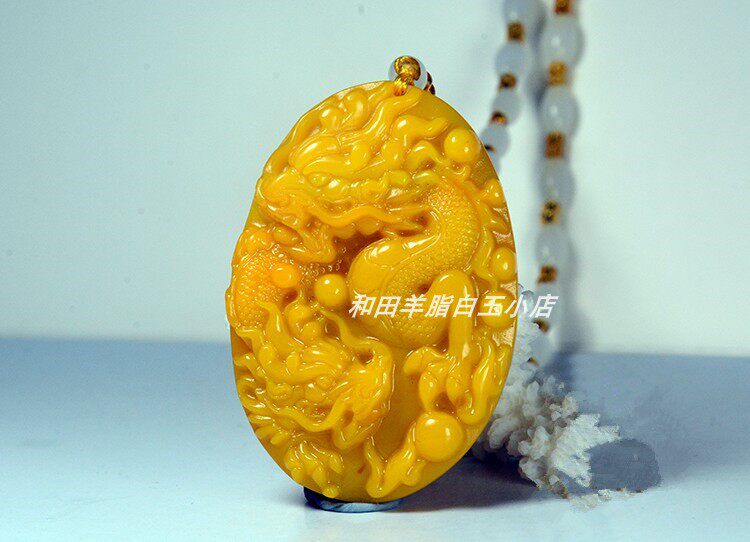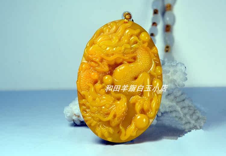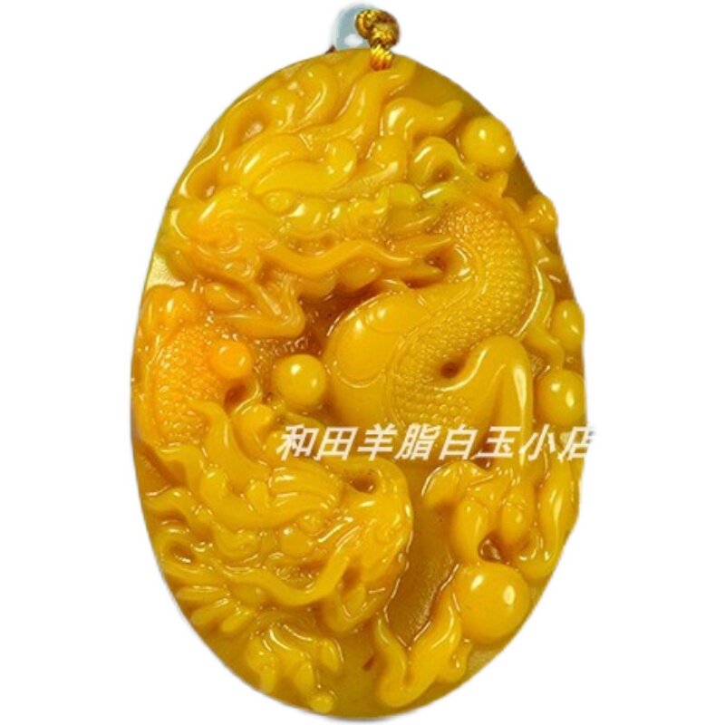和田玉龙牌挂件黄龙玉双龙吊坠项坠黄玉双龙戏珠挂件生肖龙平安牌