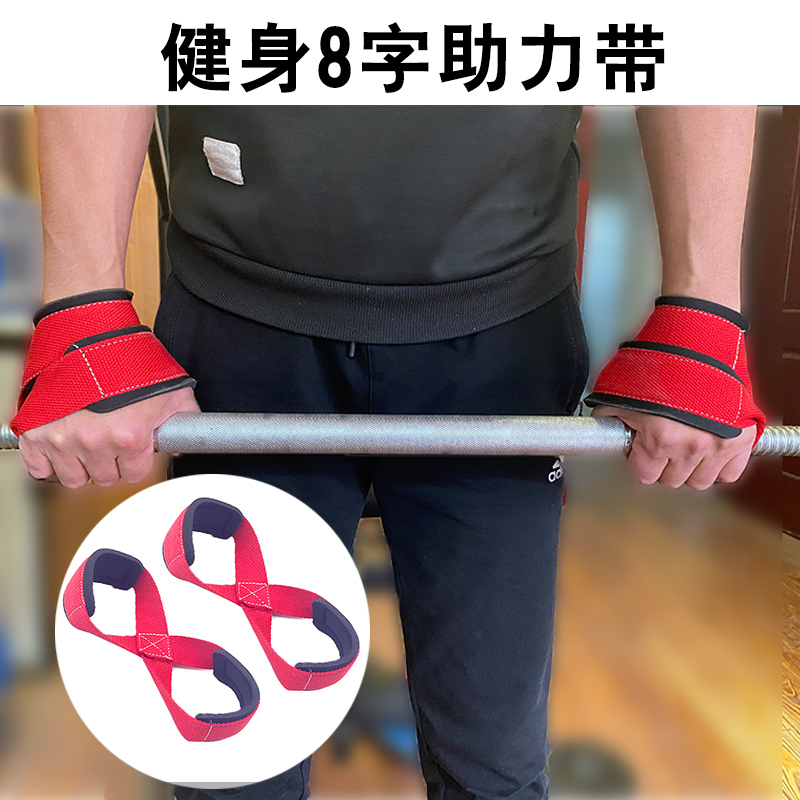 8字八字助力带健身护腕男深蹲硬拉防滑训练手套握力带力量举借力