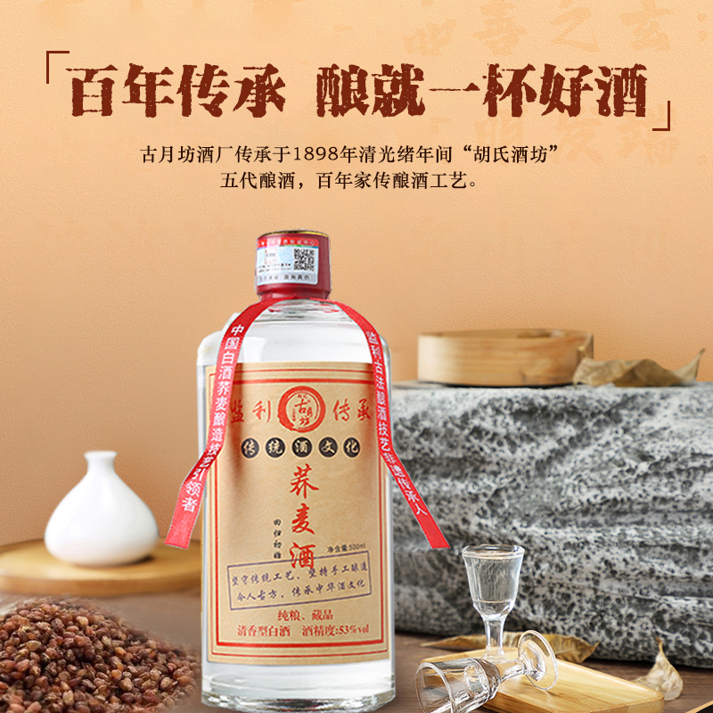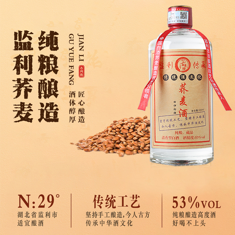 古月坊荞麦酒官方旗舰店53度乔麦酒清香型白酒纯粮食苦荞酒整箱装