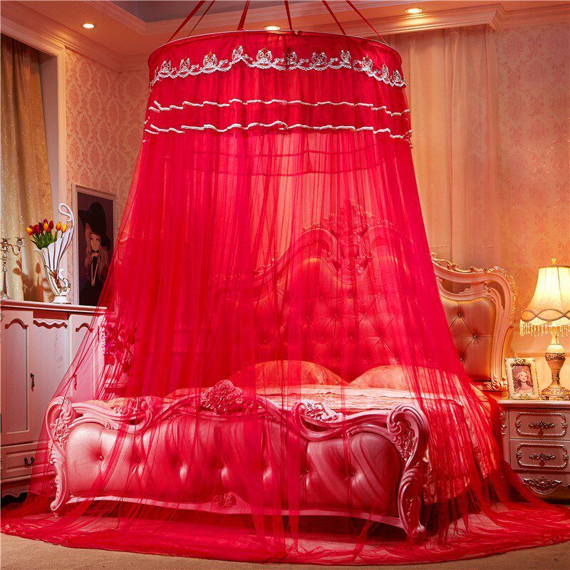 si6k大红吊顶蚊帐公主落地式圆顶婚庆宫廷蚊帐结婚欧式加密吸顶
