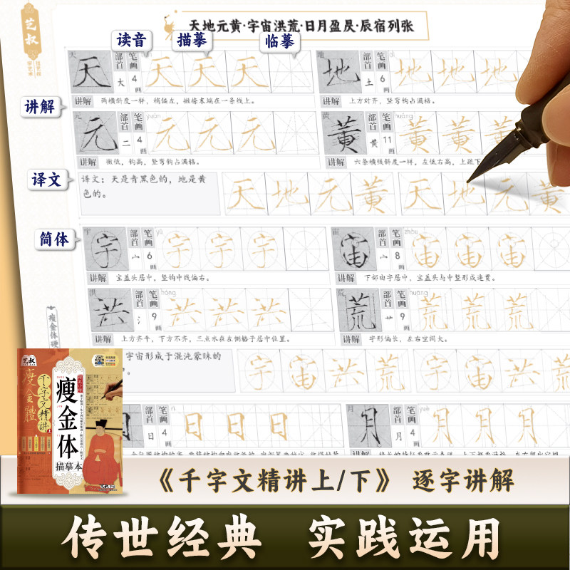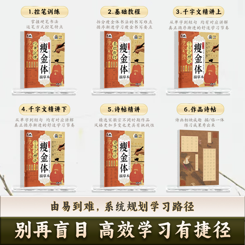 宋徽宗瘦金体硬笔字帖描摹本套装 高清原贴 千字文诗贴作品精讲偏旁笔画临摹硬笔字帖 学生成人临摹练字帖书法 新手入门控笔训练本