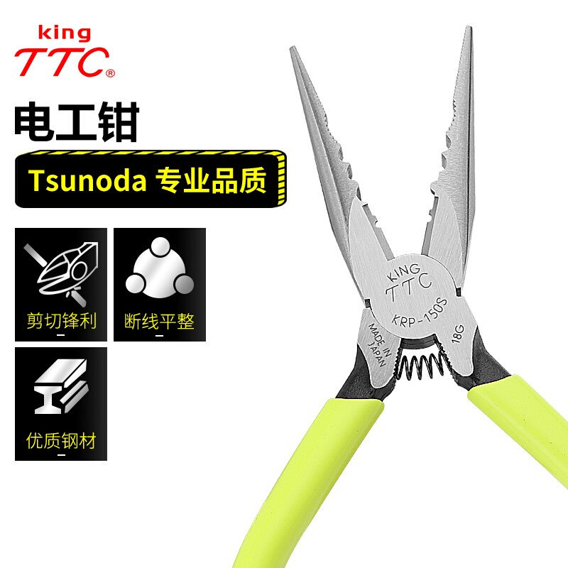 。日本TTC角田牌有牙无牙尖嘴钳KRP-150多用途6"电子钳防滑