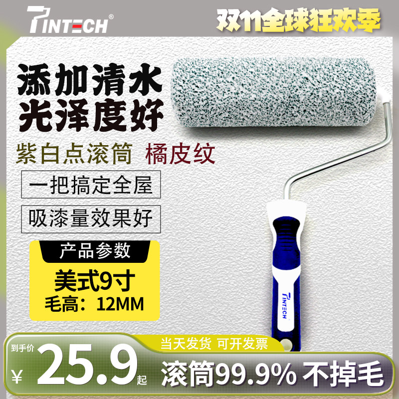 橘皮纹滚筒 艺术涂料刷墙乳胶漆蛋壳光超细纤维pintech 9寸滚筒刷