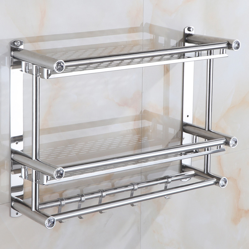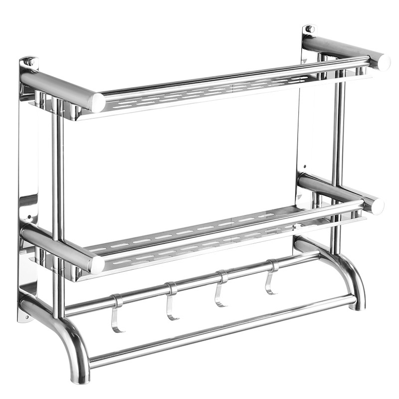 浴室洗手间不锈钢毛巾架厕所卫生间双层三层双杆置物架壁挂免打孔