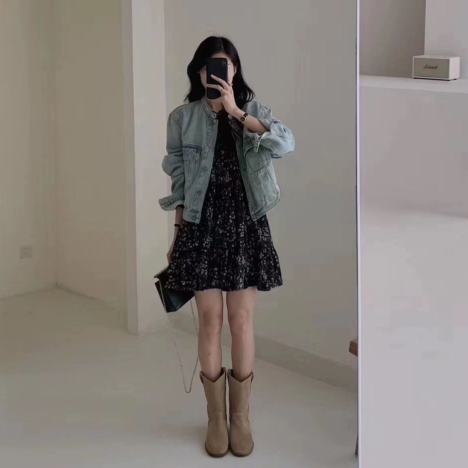 大码女装时尚牛仔外套高级感微胖穿搭显瘦碎花裙春季减龄两件套